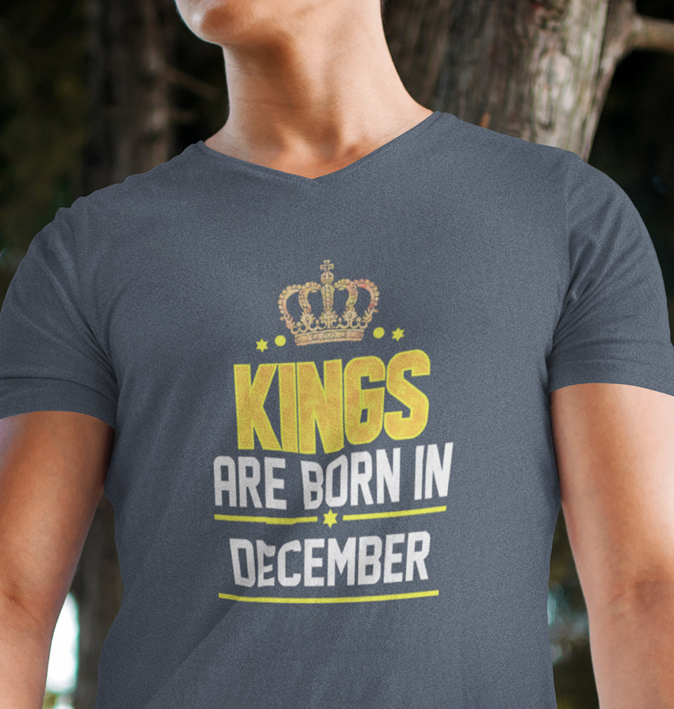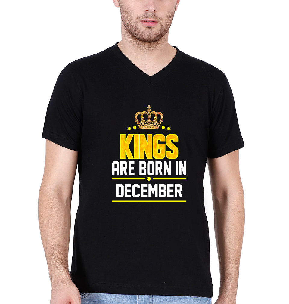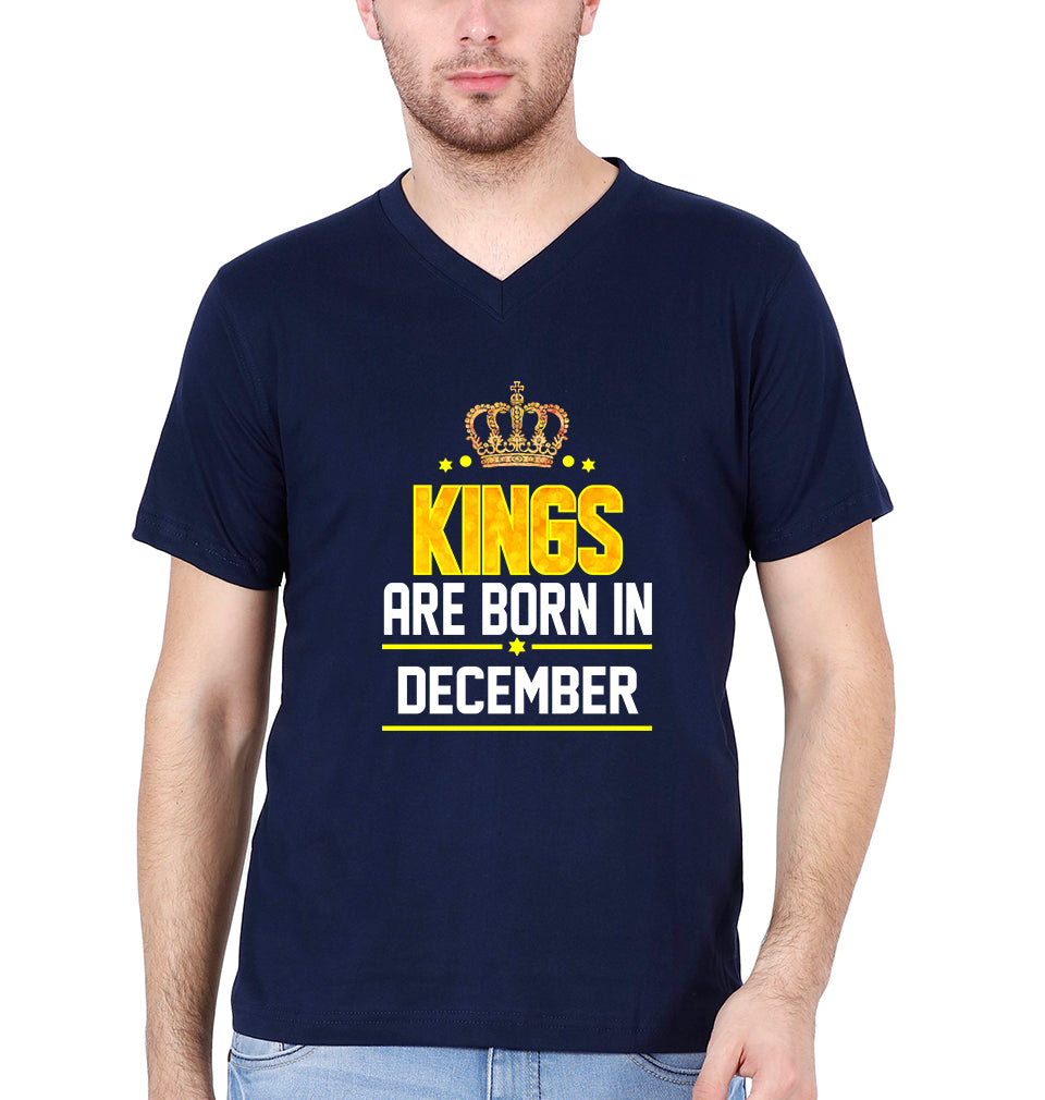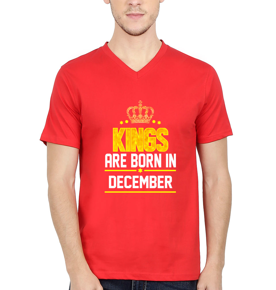 Kings Are Born In December Men V Neck Half Sleeves T-Shirts-FashionRazor