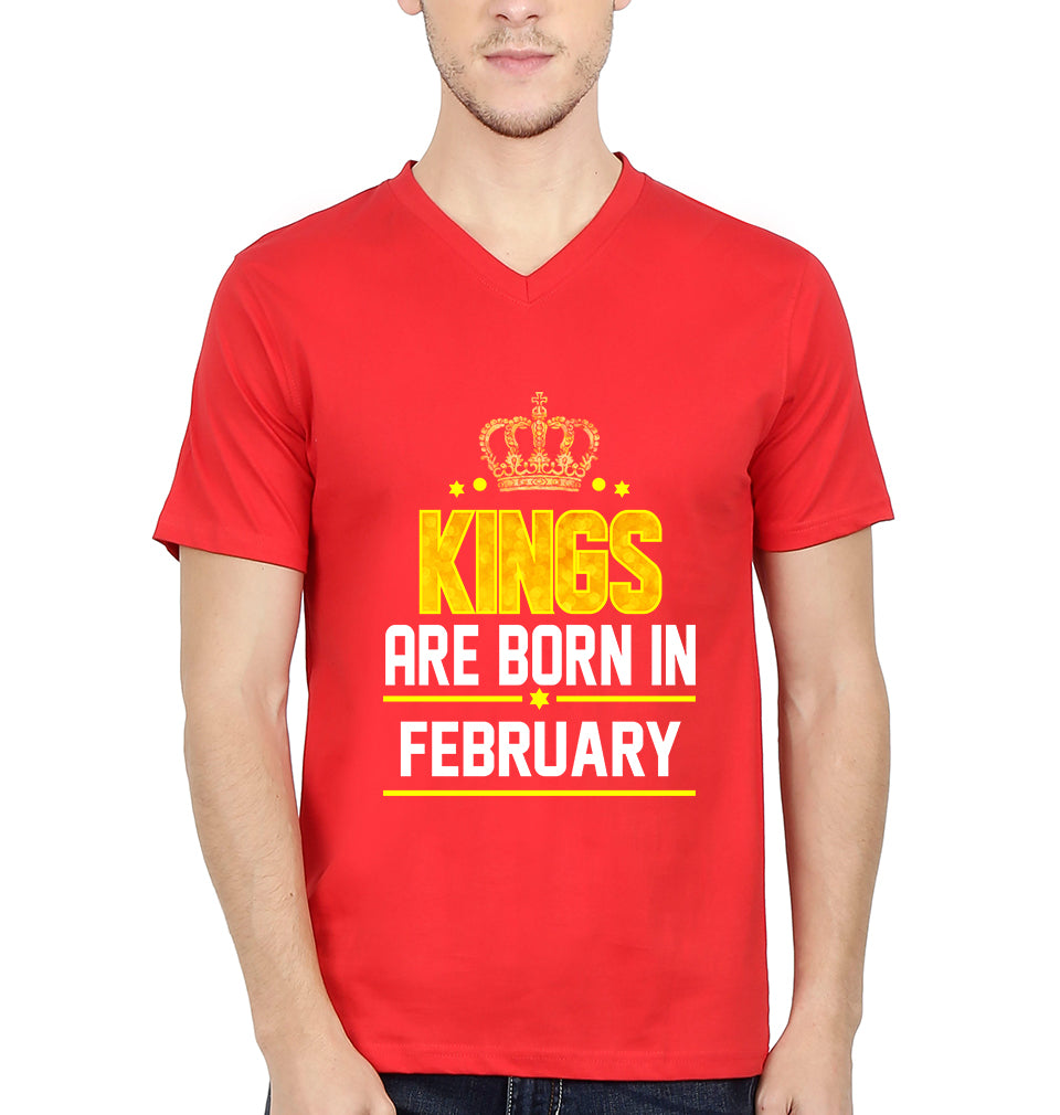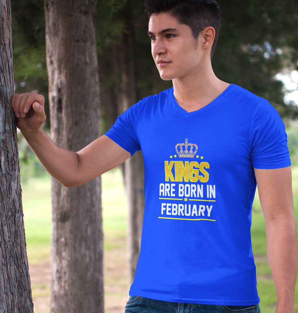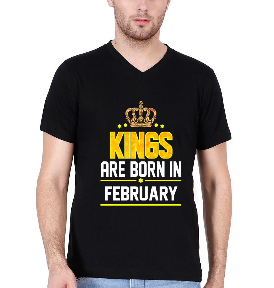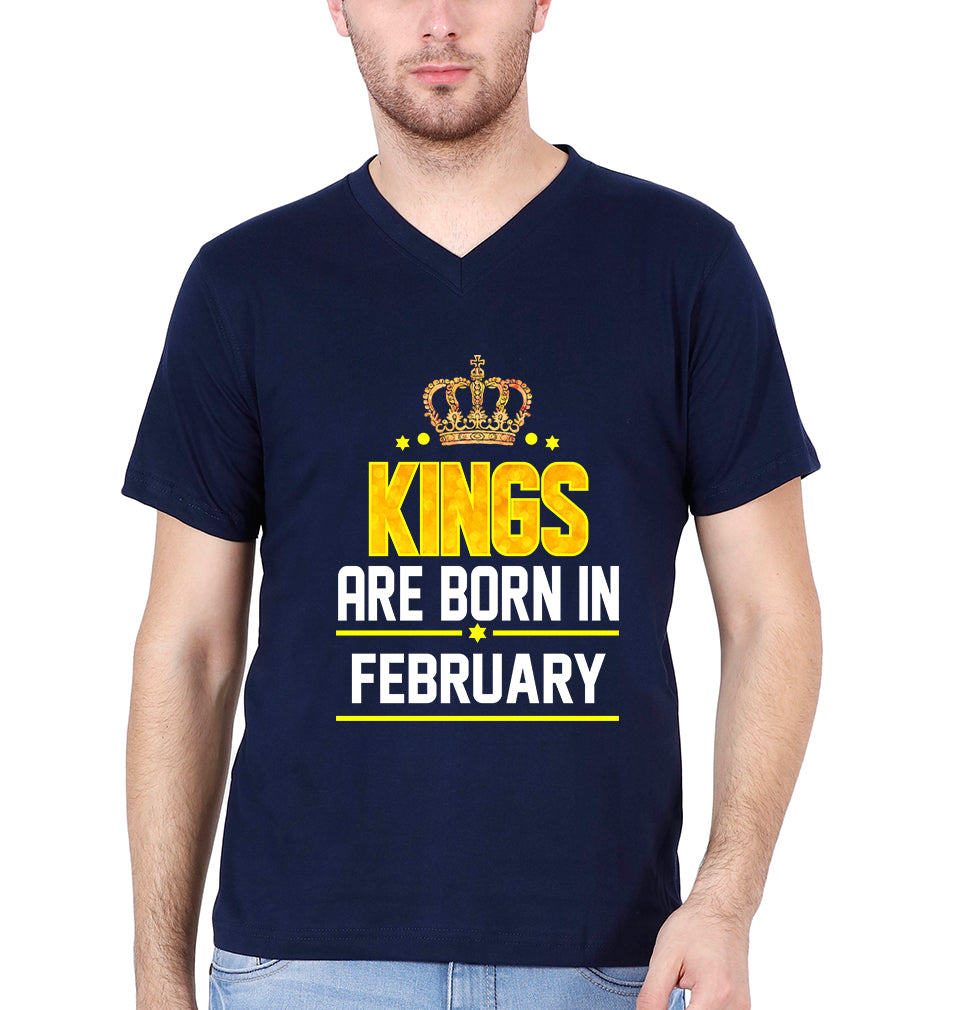 Kings Are Born In February Men V Neck Half Sleeves T-Shirts-FashionRazor