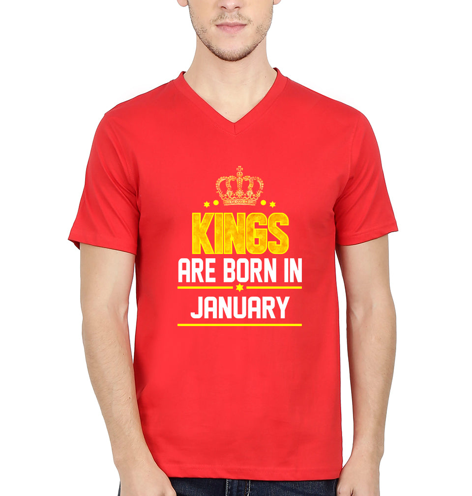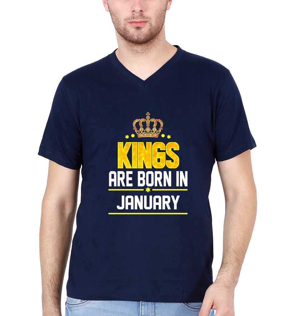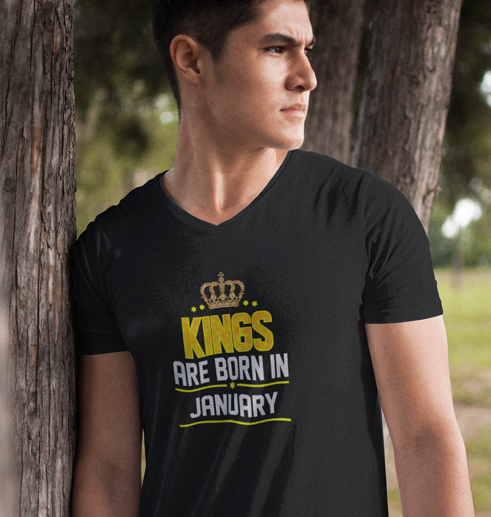 Kings Are Born In January Men V Neck Half Sleeves T-Shirts-FashionRazor