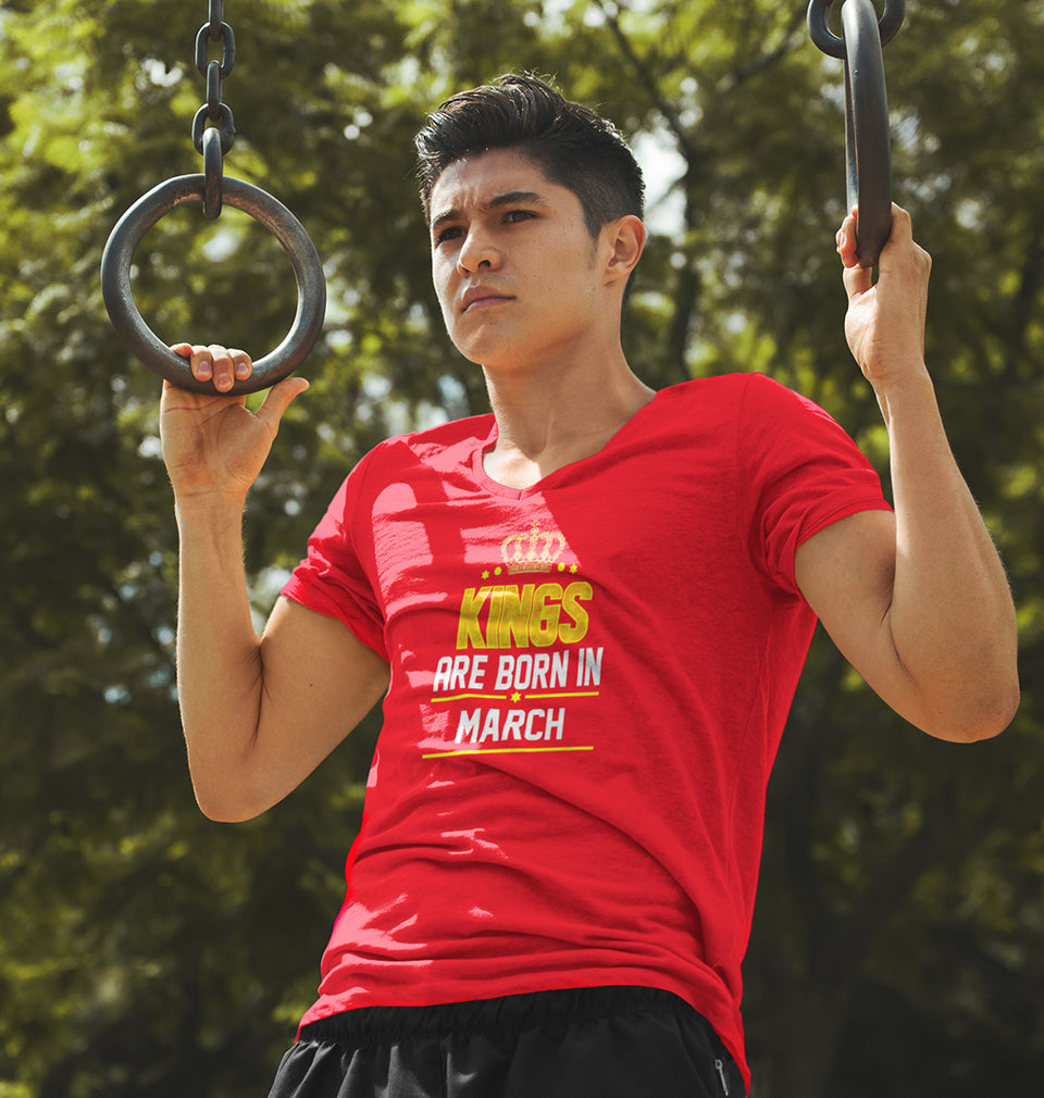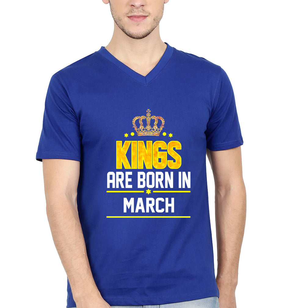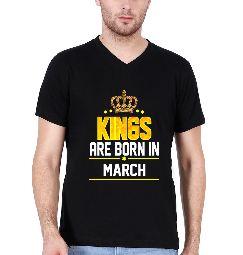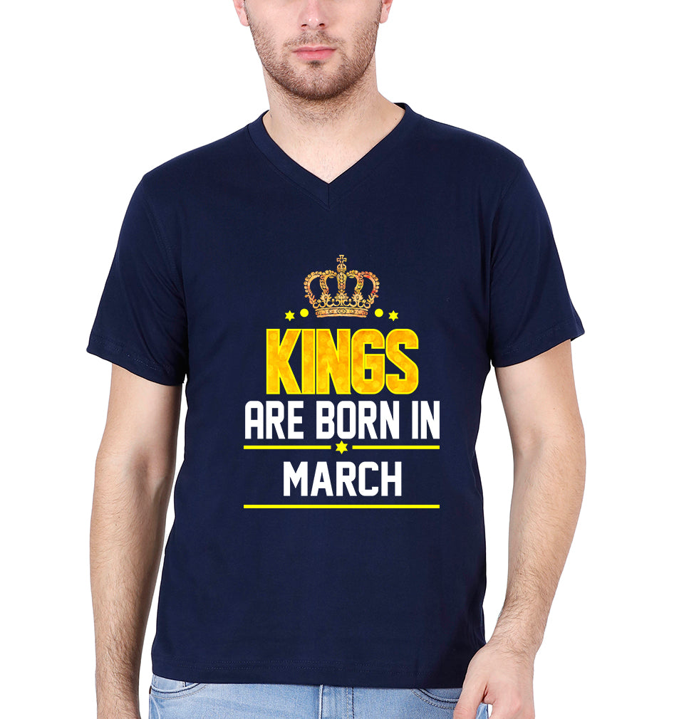 Kings Are Born In March Men V Neck Half Sleeves T-Shirts-FashionRazor