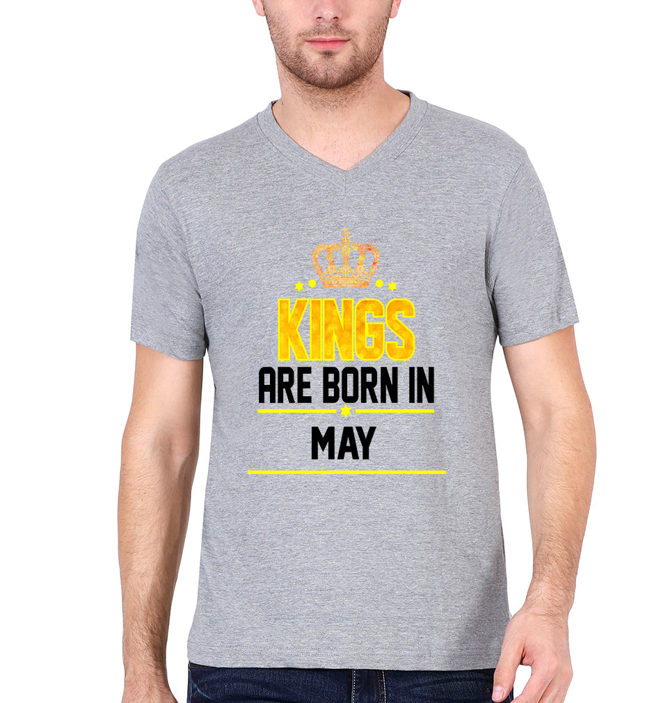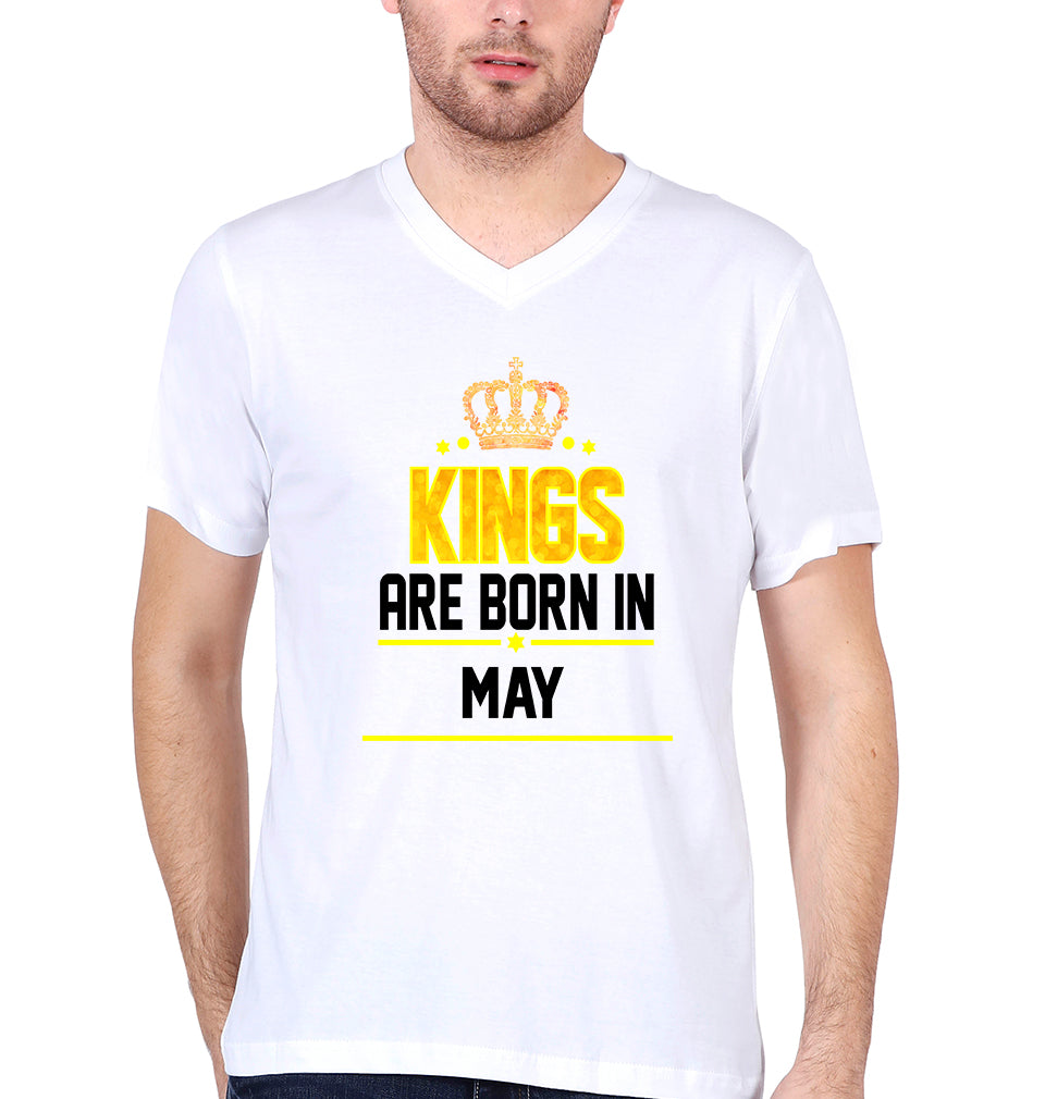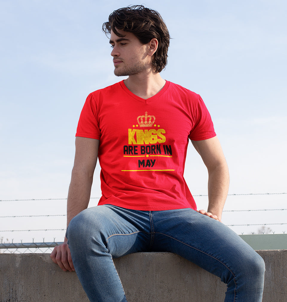 Kings Are Born In May Men V Neck Half Sleeves T-Shirts-FashionRazor