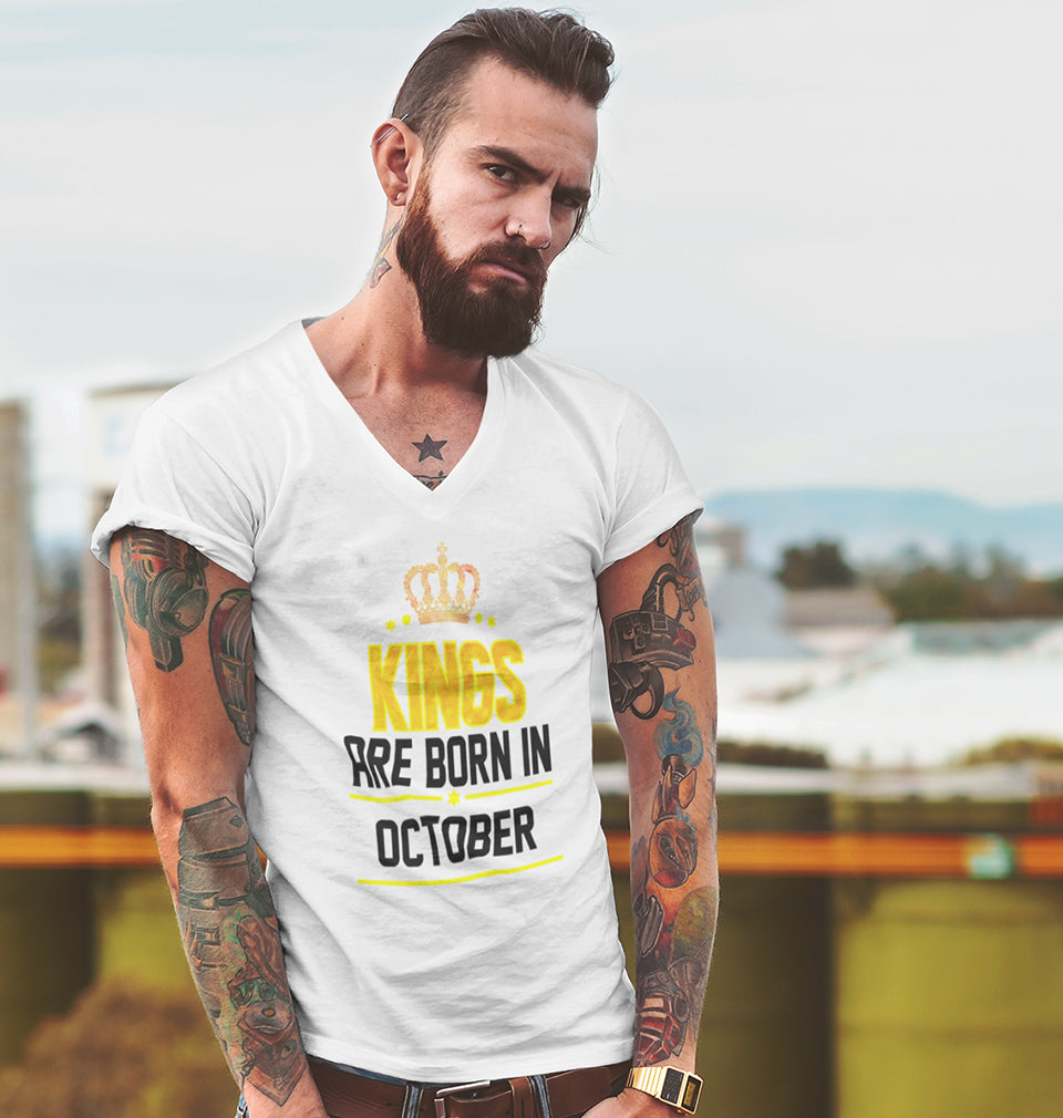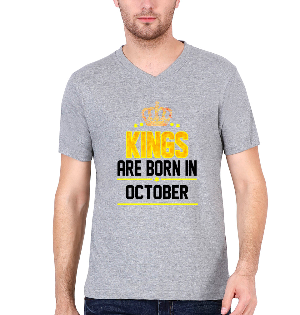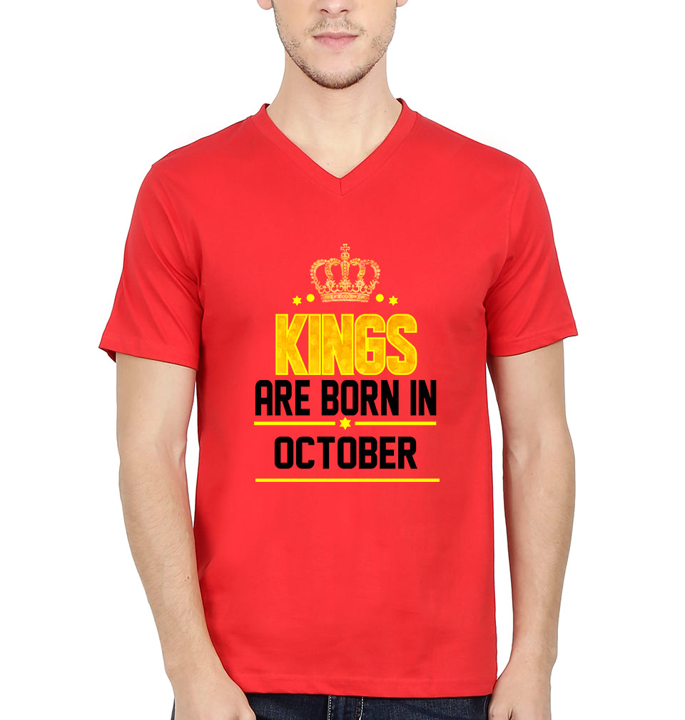 Kings Are Born In October Men V Neck Half Sleeves T-Shirts-FashionRazor