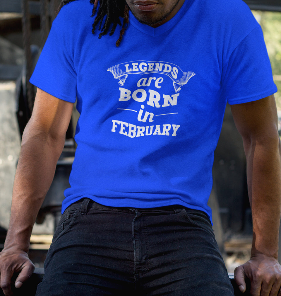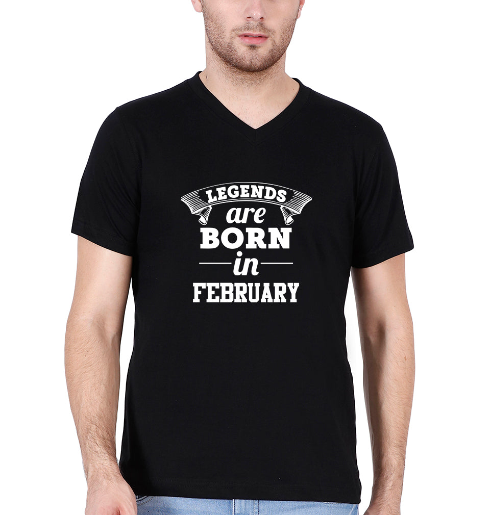 Legends are Born in February Men V Neck Half Sleeves T-Shirts-FashionRazor