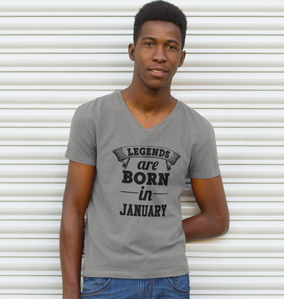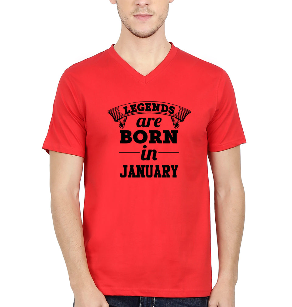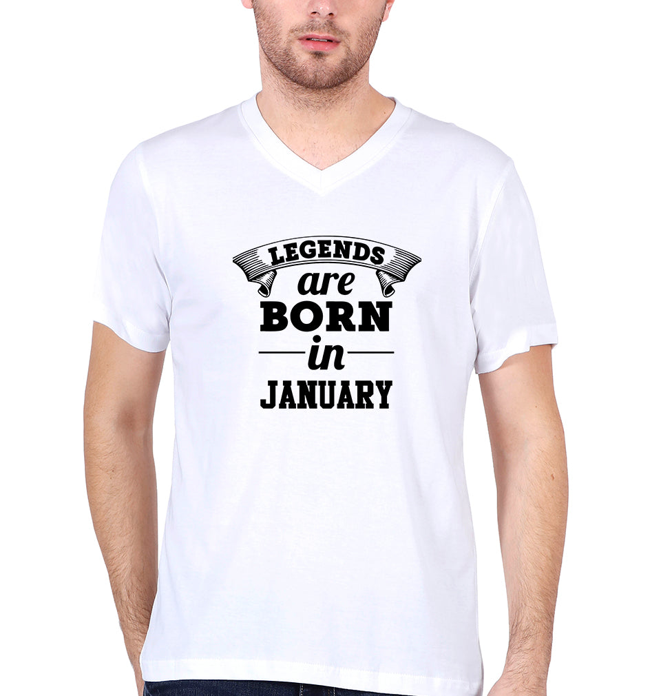 Legends are Born in January Men V Neck Half Sleeves T-Shirts-FashionRazor