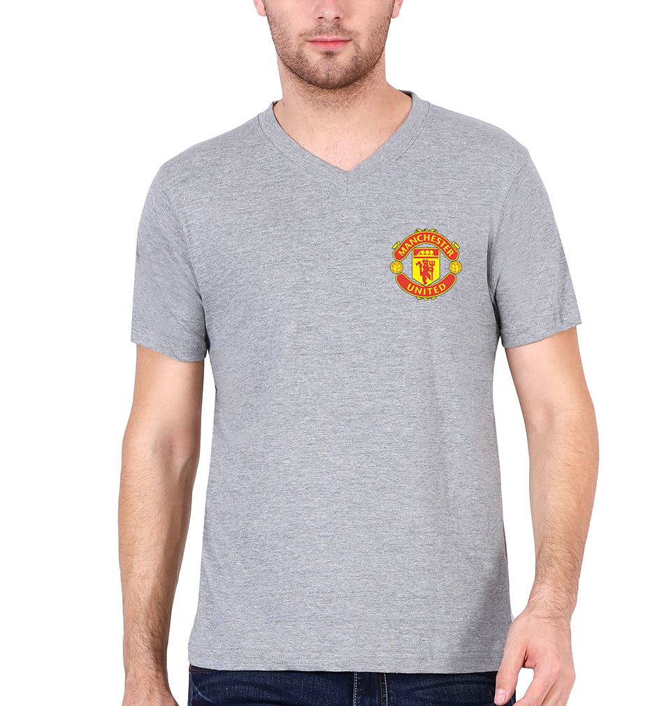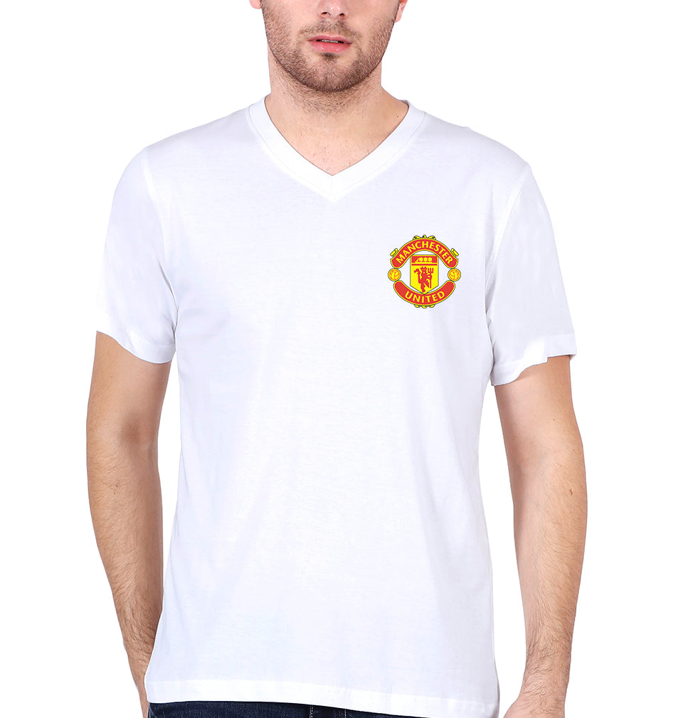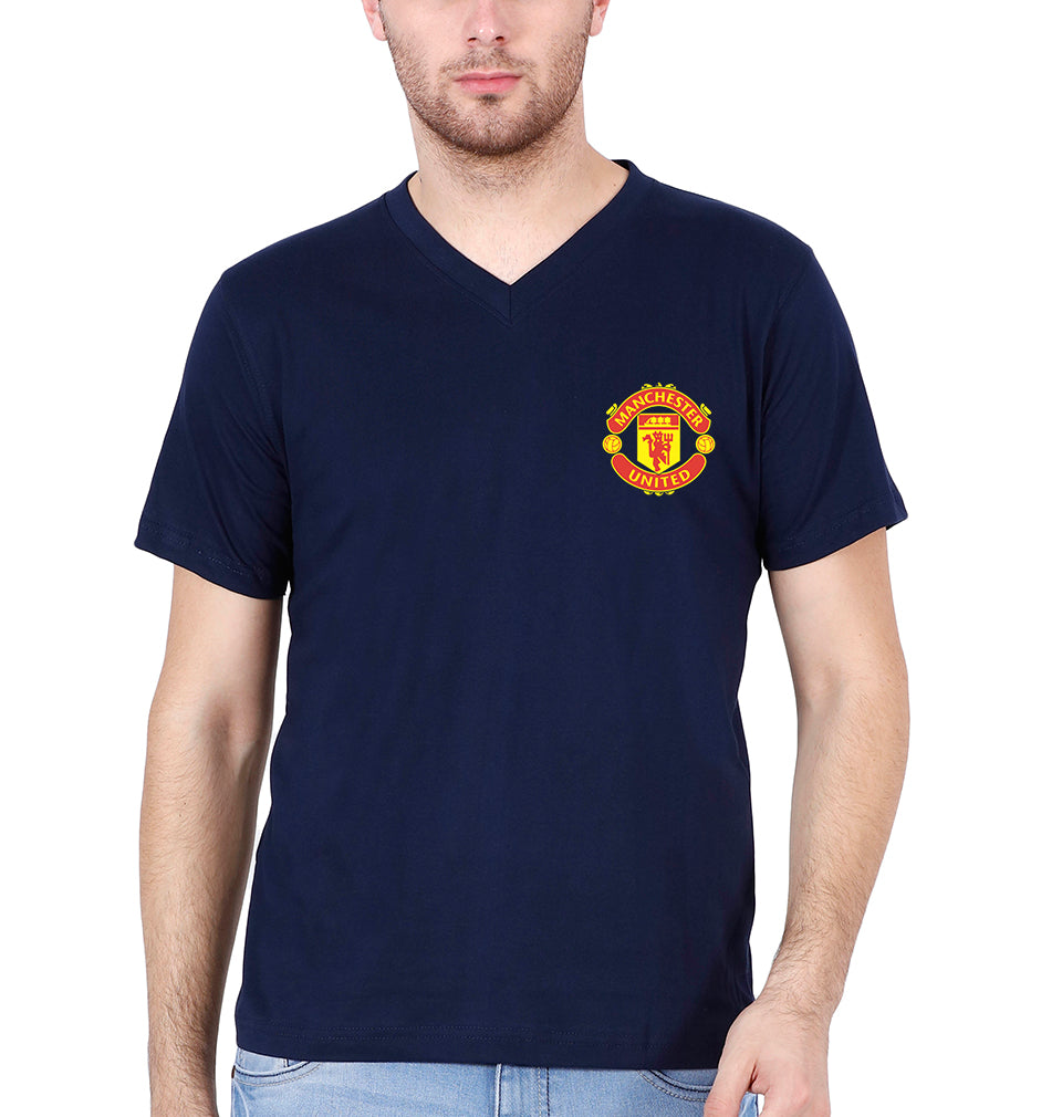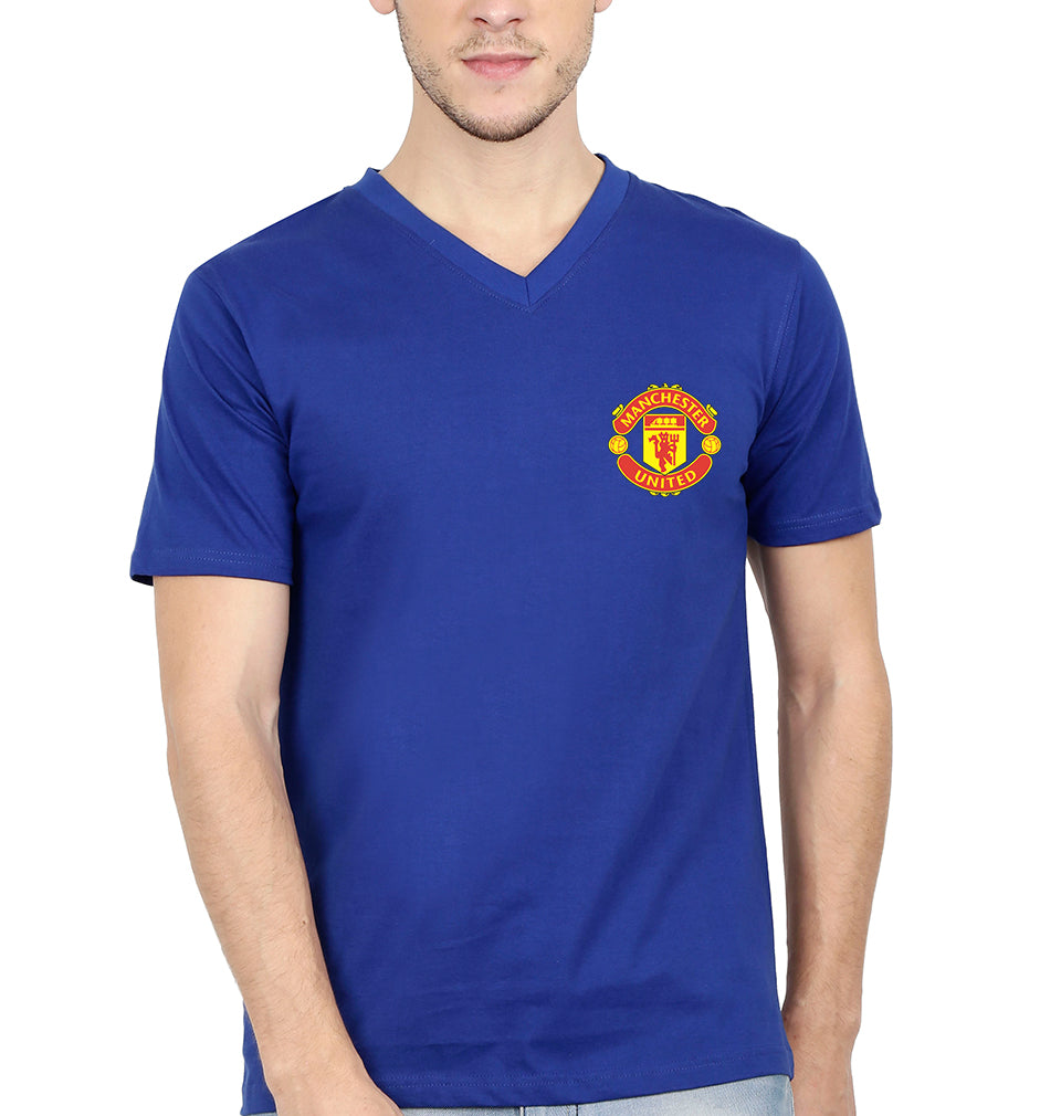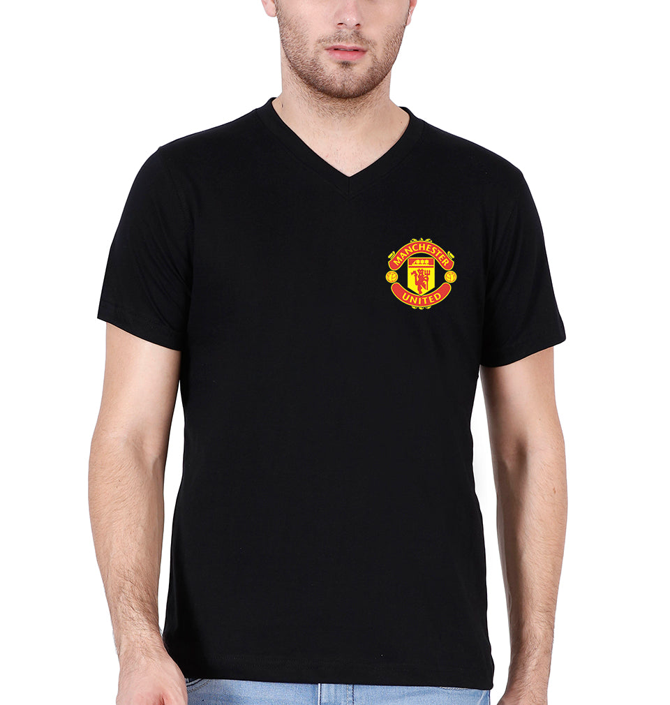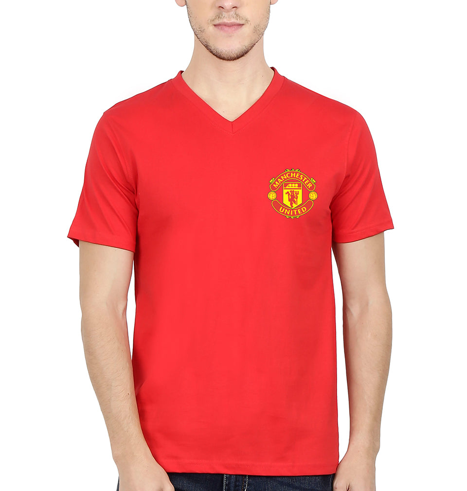 Manchester United Logo Men V Neck Half Sleeves T-Shirts-FashionRazor