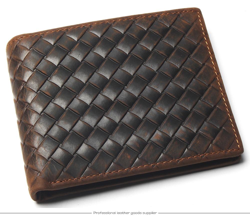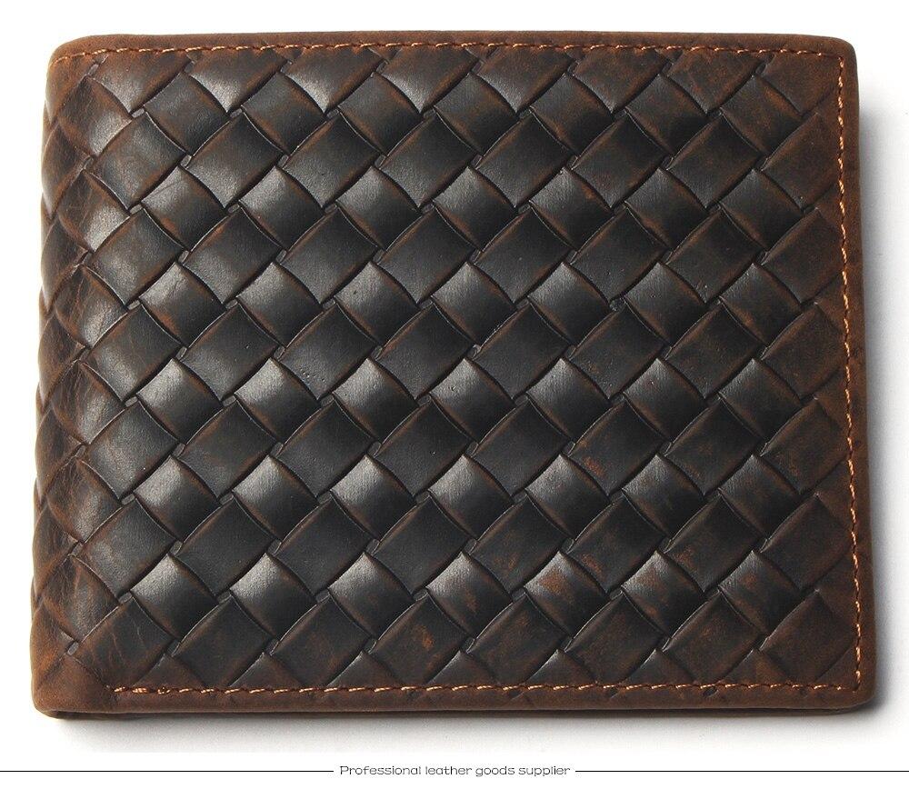 Buy Genuine Leather Wallet With Card Page Credit Card Crazy Horse Men Woven Pattern-FashionRazor