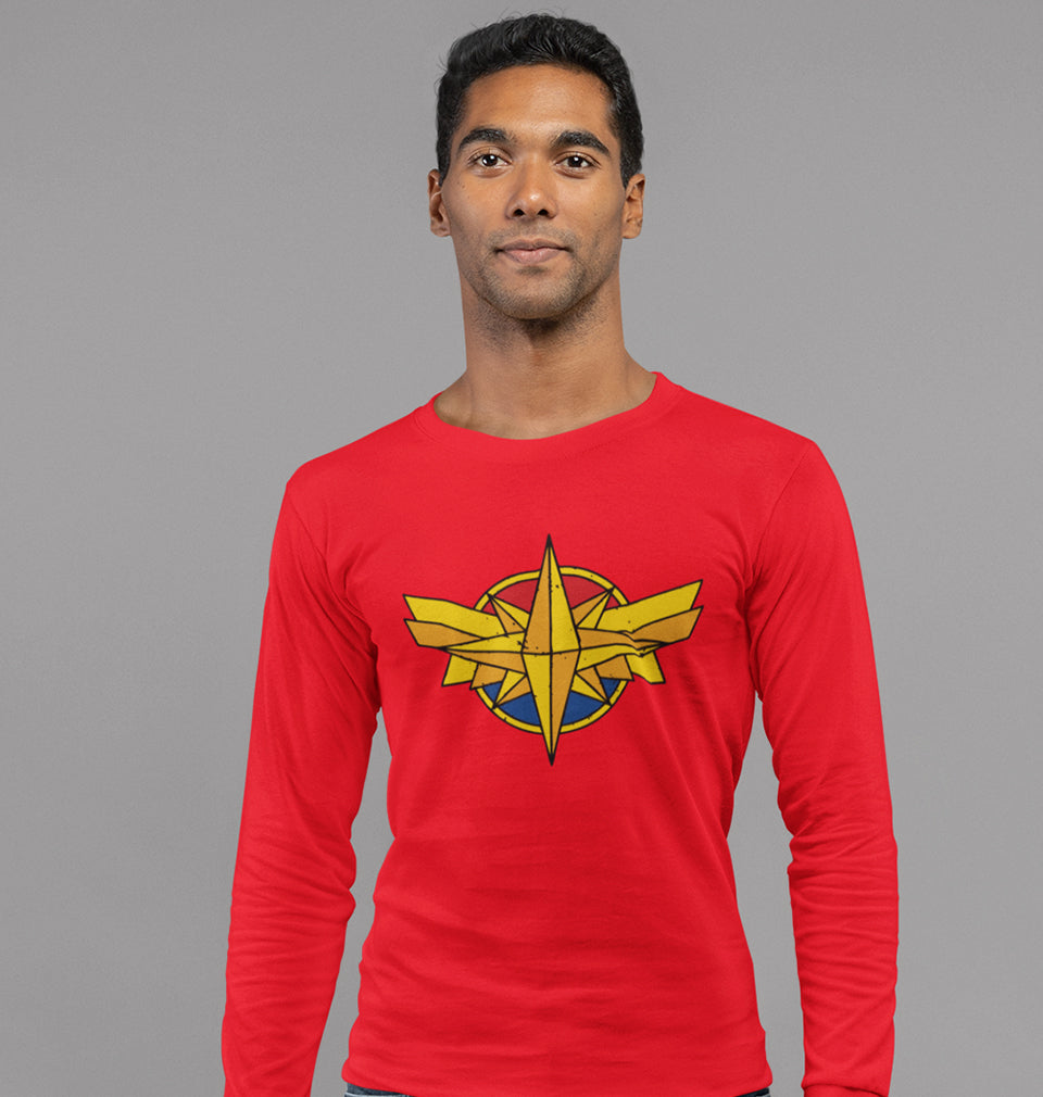 Captain Marvel Logo Men Full Sleeves T-Shirts-FashionRazor
