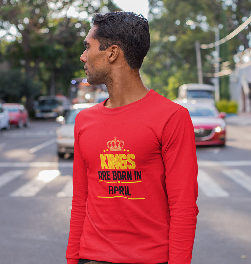 Kings Are Born In April Men Full Sleeves T-Shirts-FashionRazor