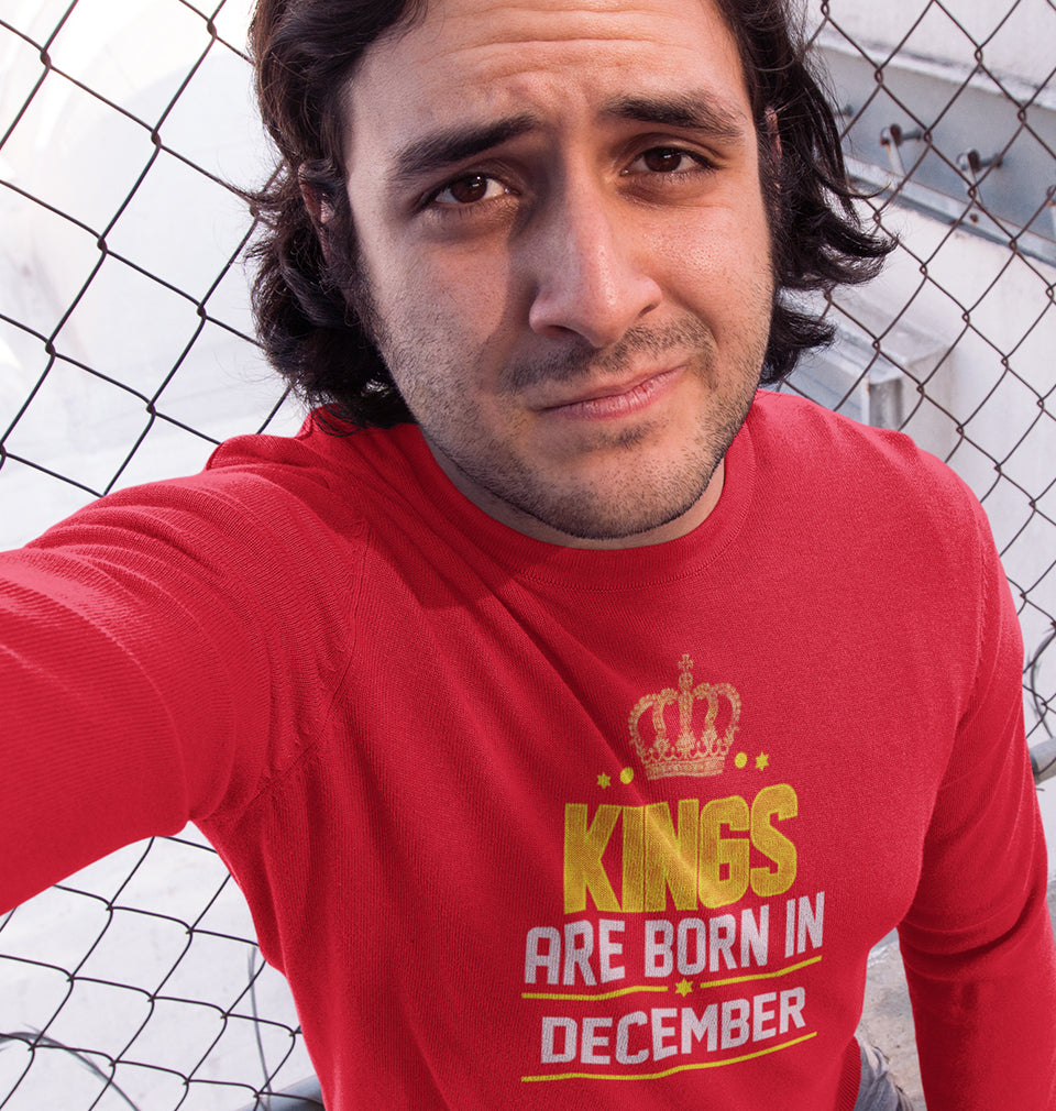 Kings Are Born In December Men Full Sleeves T-Shirts-FashionRazor