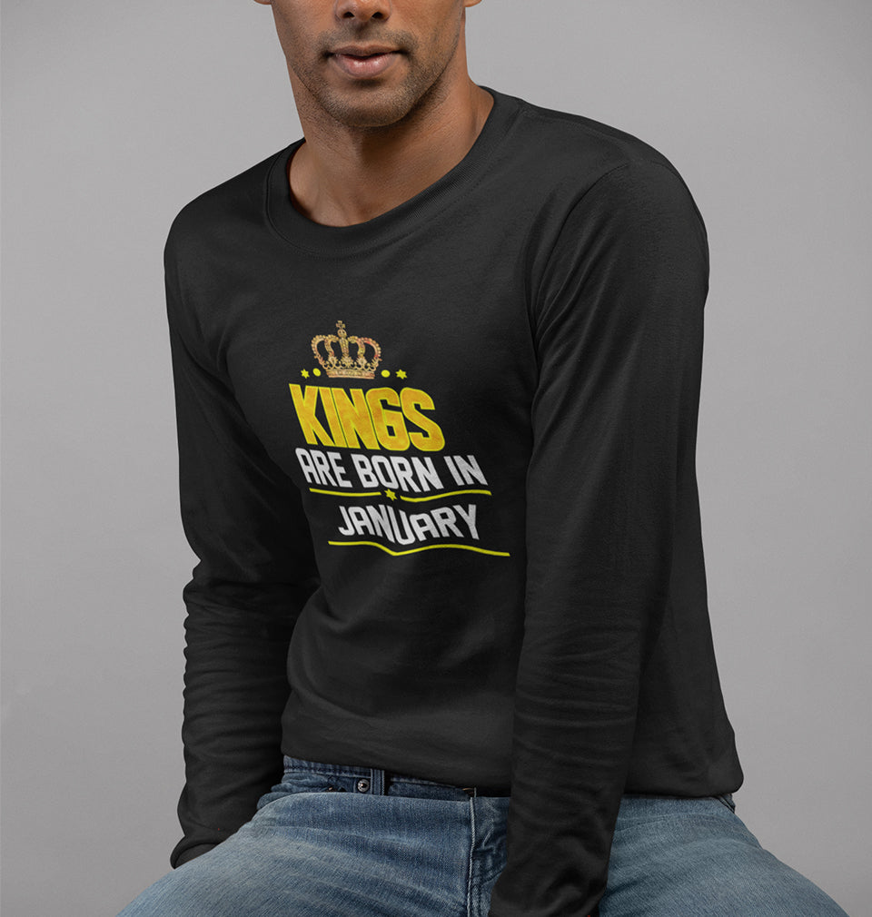 Kings Are Born In January Men Full Sleeves T-Shirts-FashionRazor