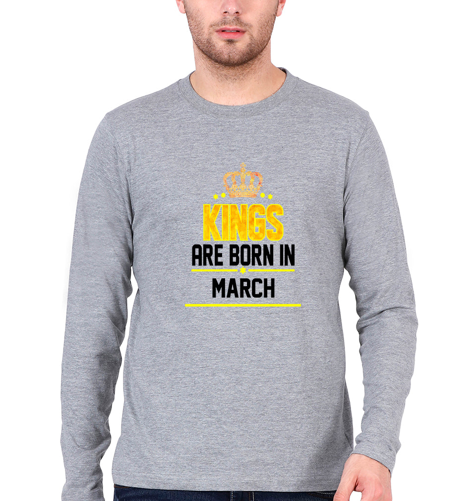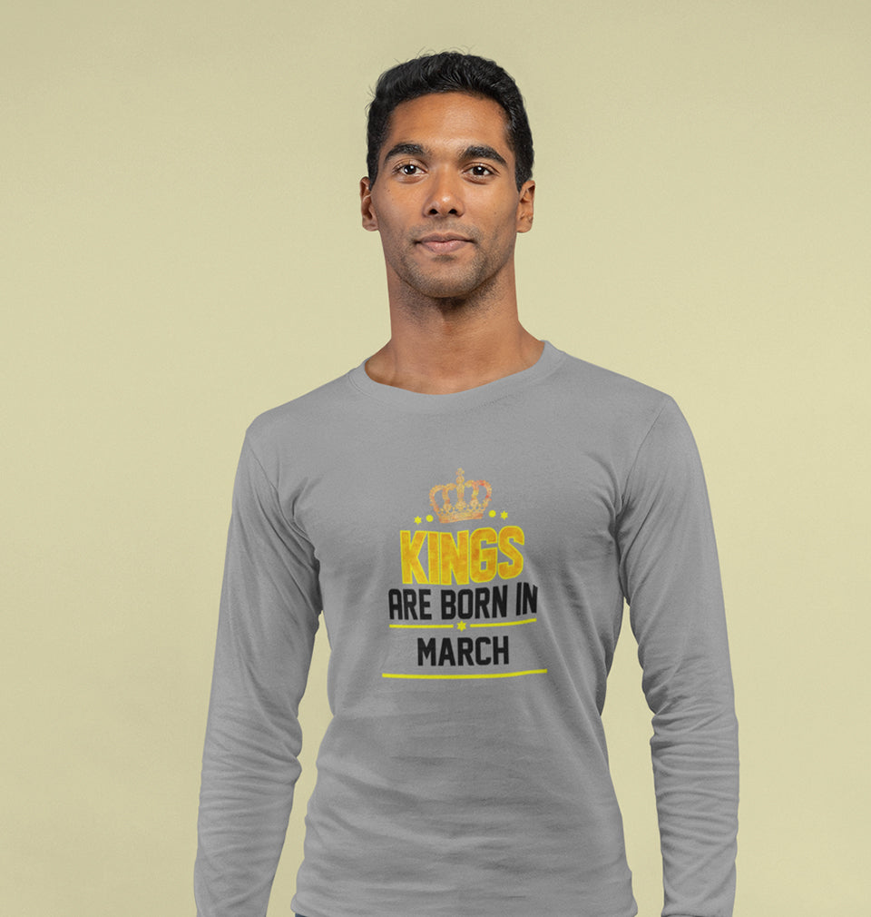 Kings Are Born In March Men Full Sleeves T-Shirts-FashionRazor