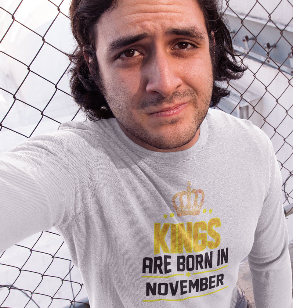 Kings Are Born In November Men Full Sleeves T-Shirts-FashionRazor