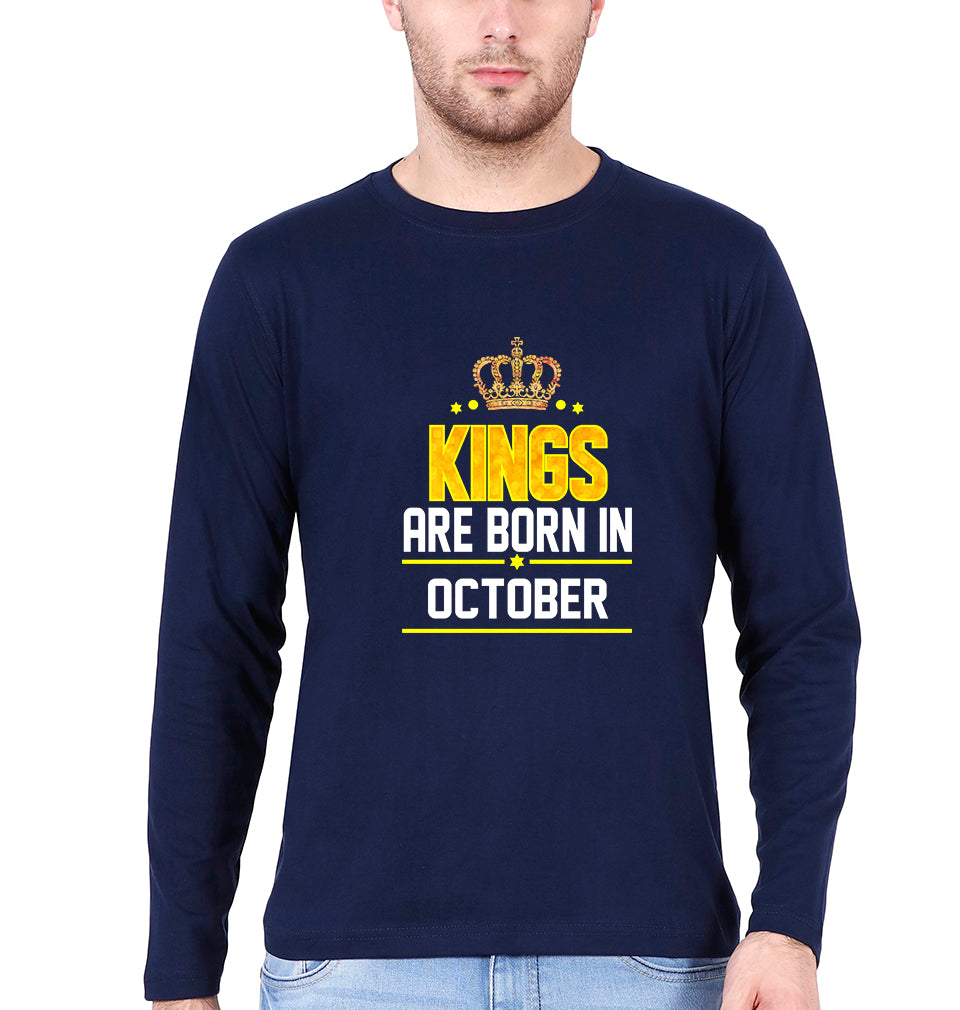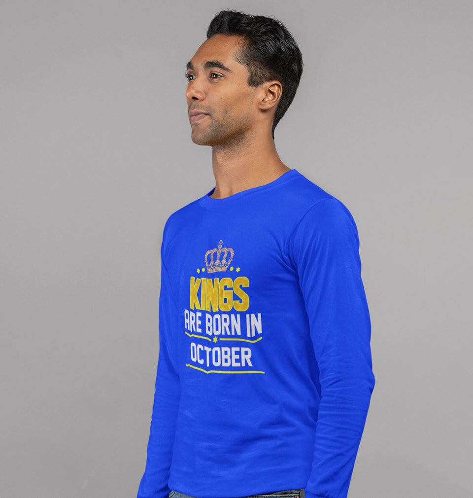 Kings Are Born In October Men Full Sleeves T-Shirts-FashionRazor