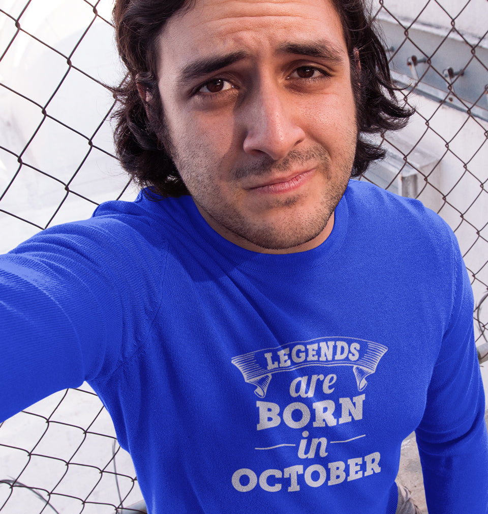 Legends are Born in October Men Full Sleeves T-Shirts-FashionRazor