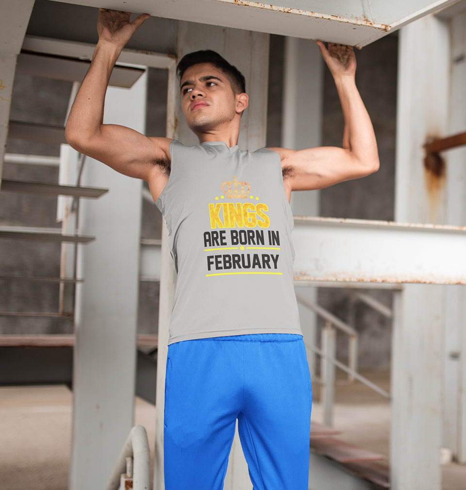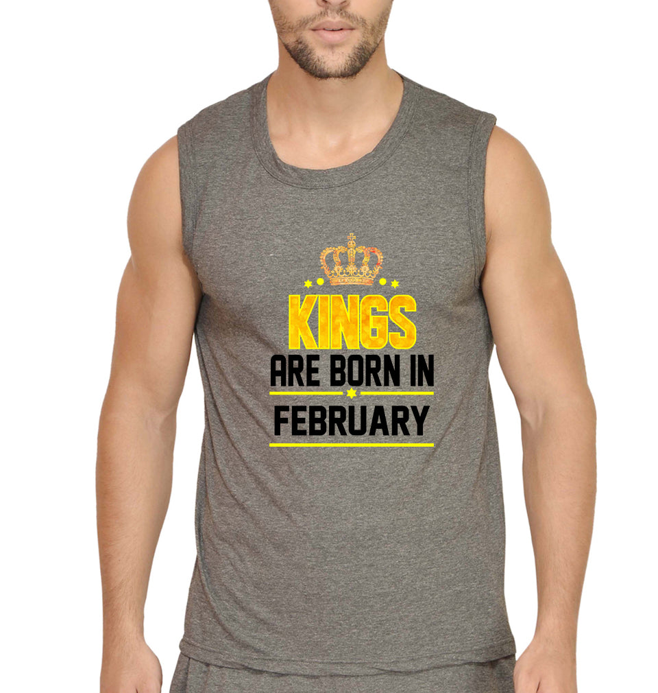 Kings Are Born In February Men Sleeveless T-Shirts-FashionRazor