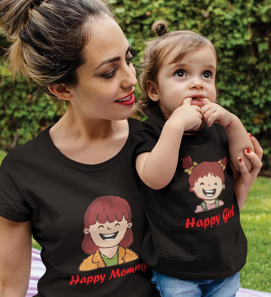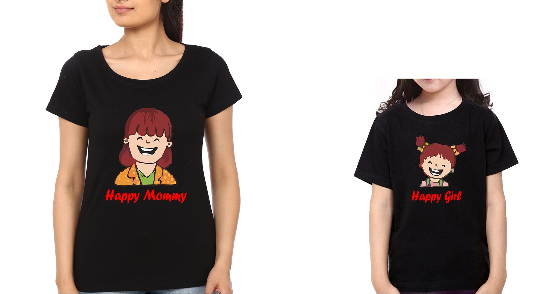 Happy Mom Happy Girl Mother and Daughter Matching T-Shirt- FashionRazor