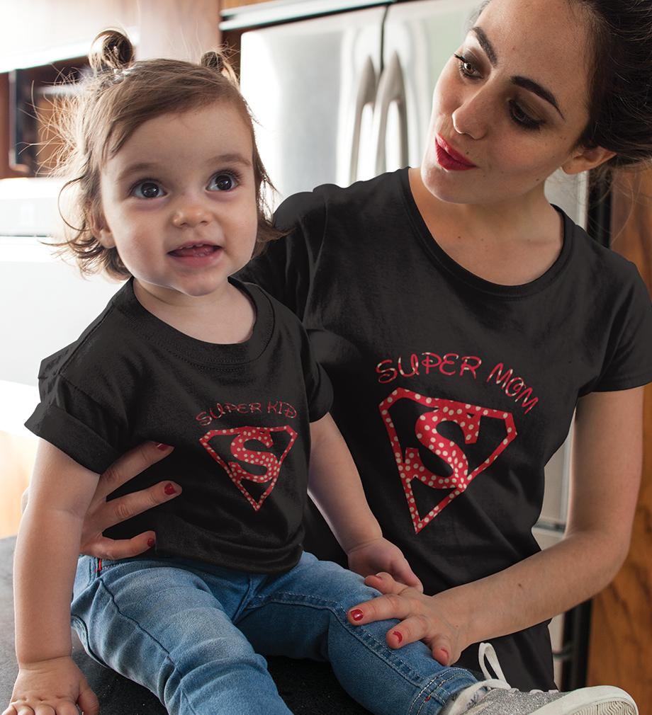Super Mom Super Kid Mother and Daughter Matching T-Shirt- FashionRazor