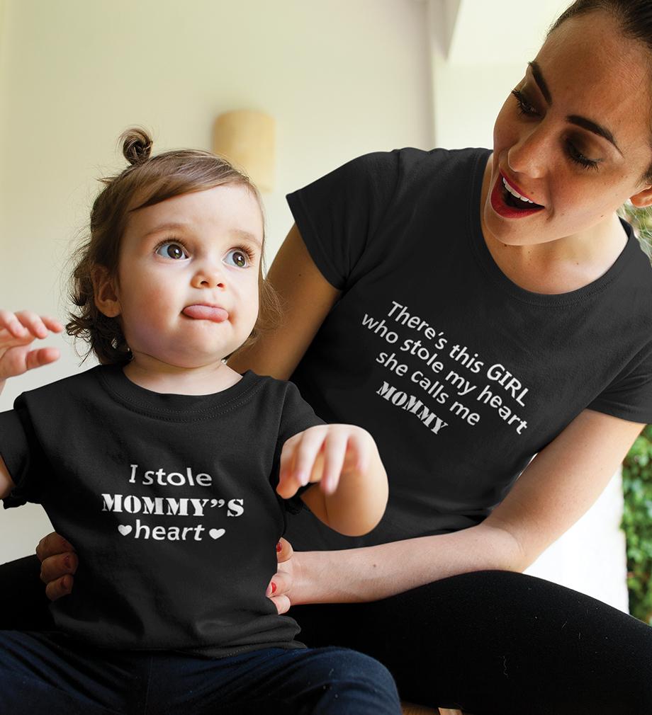 There Is girl Who Stole My Heart I Stole Mommy's Heart Mother and Daughter Matching T-Shirt- FashionRazor