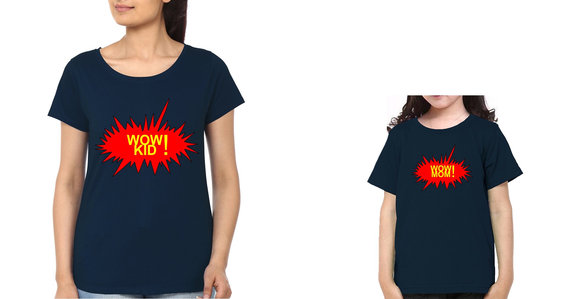 Wow Kid Wow Mom Mother and Daughter Matching T-Shirt- FashionRazor