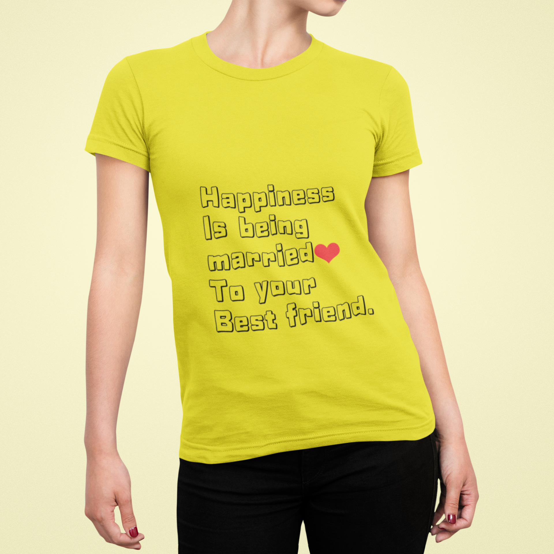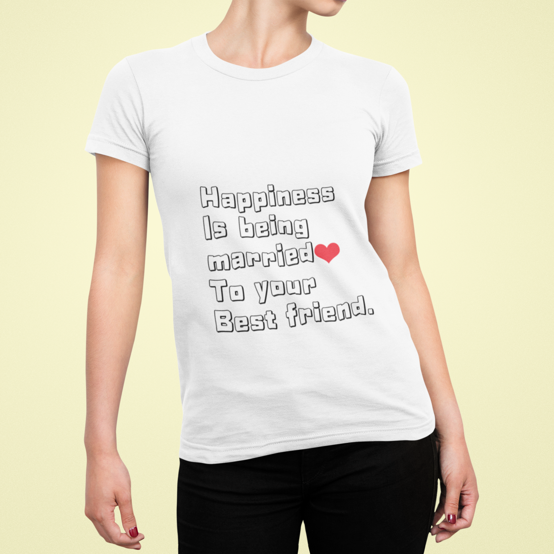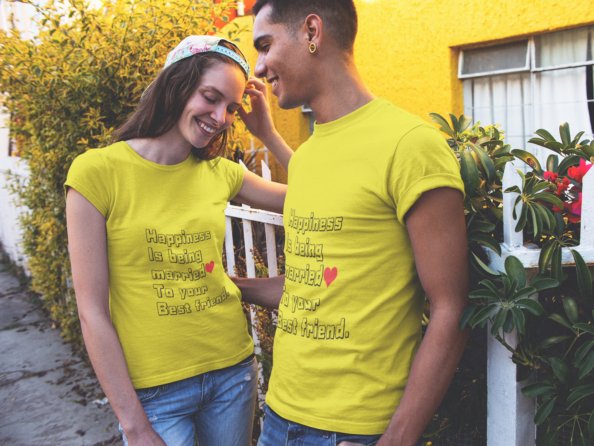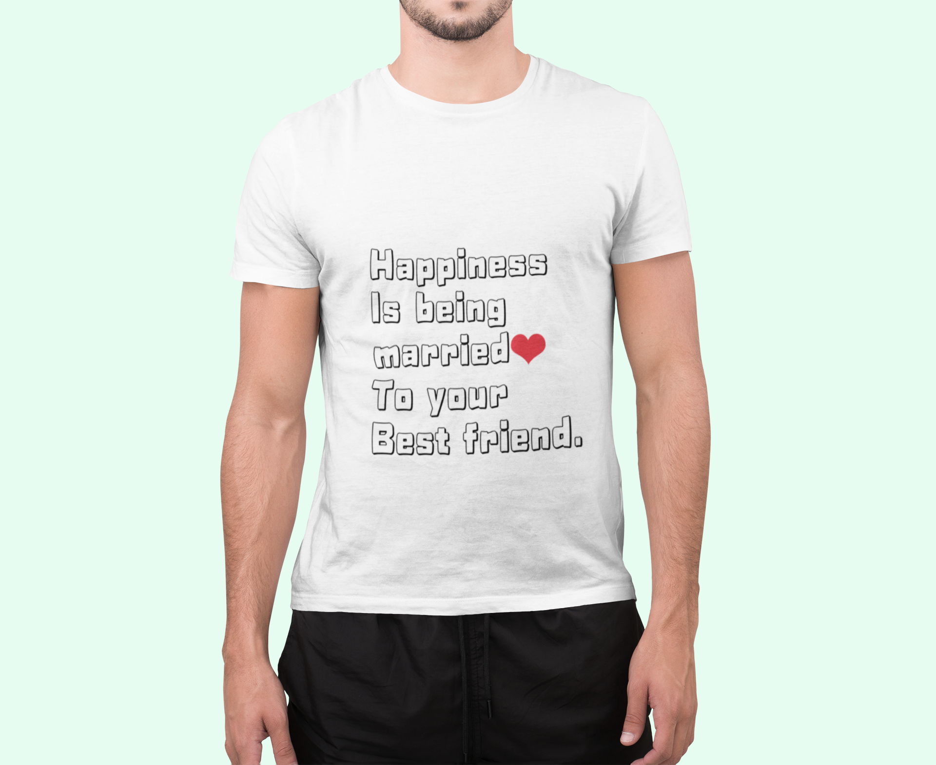 Happiness is being married to your best friend Couple Pre Wedding Photoshoot Half Sleeves T-Shirts -FashionRazor