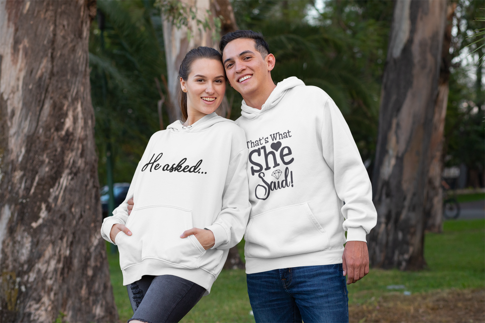 He asked she said yes Couple Pre Wedding Photoshoot Couple Hoodie-FashionRazor