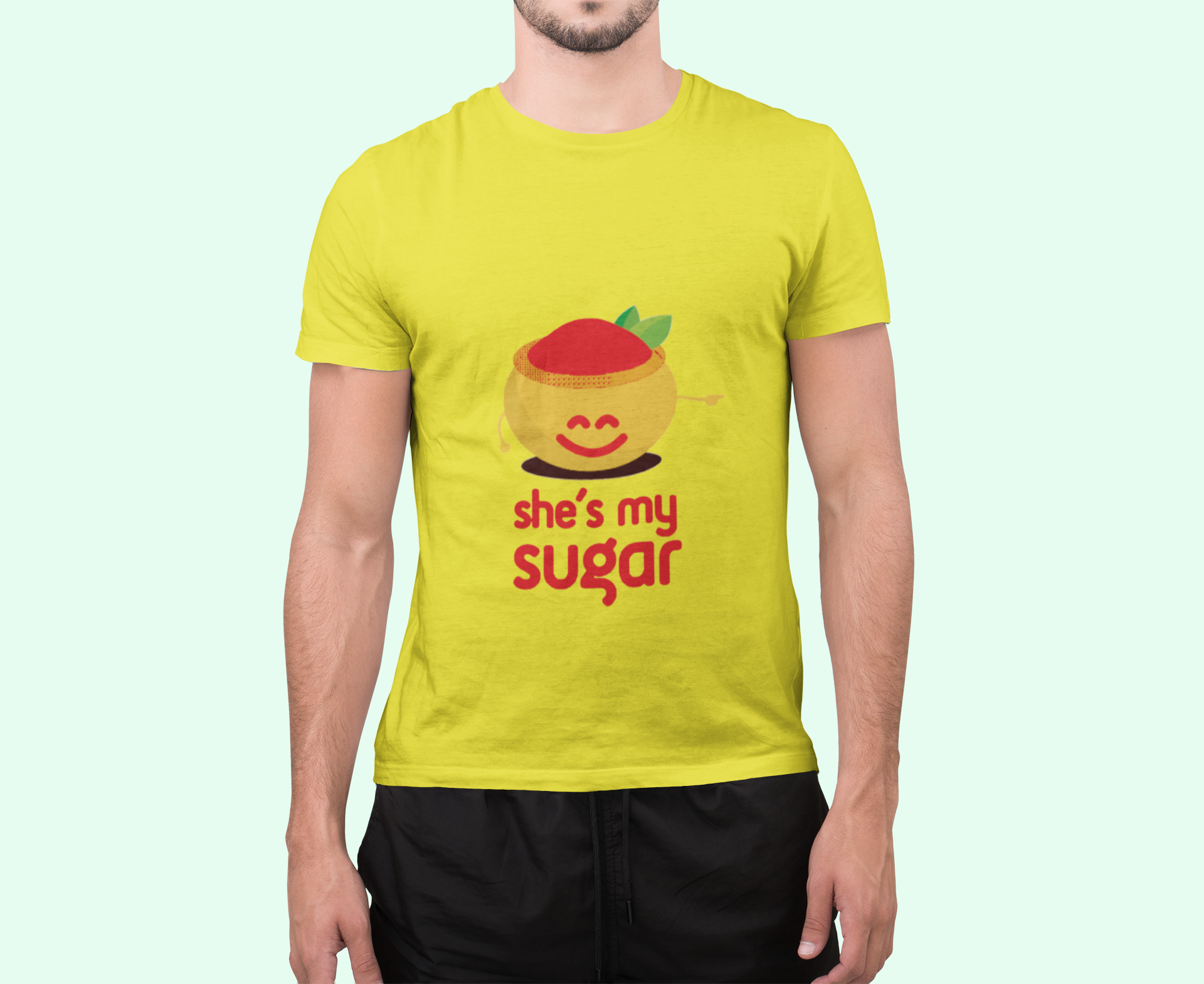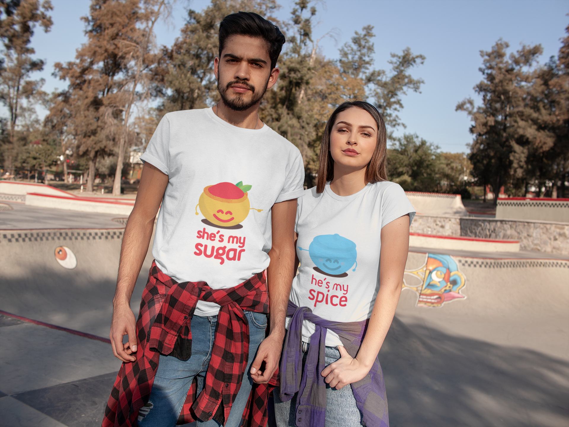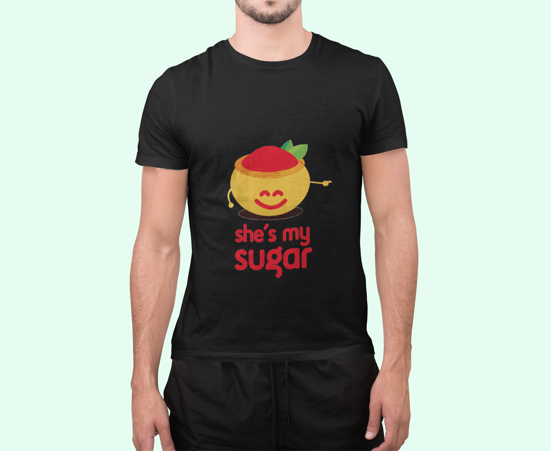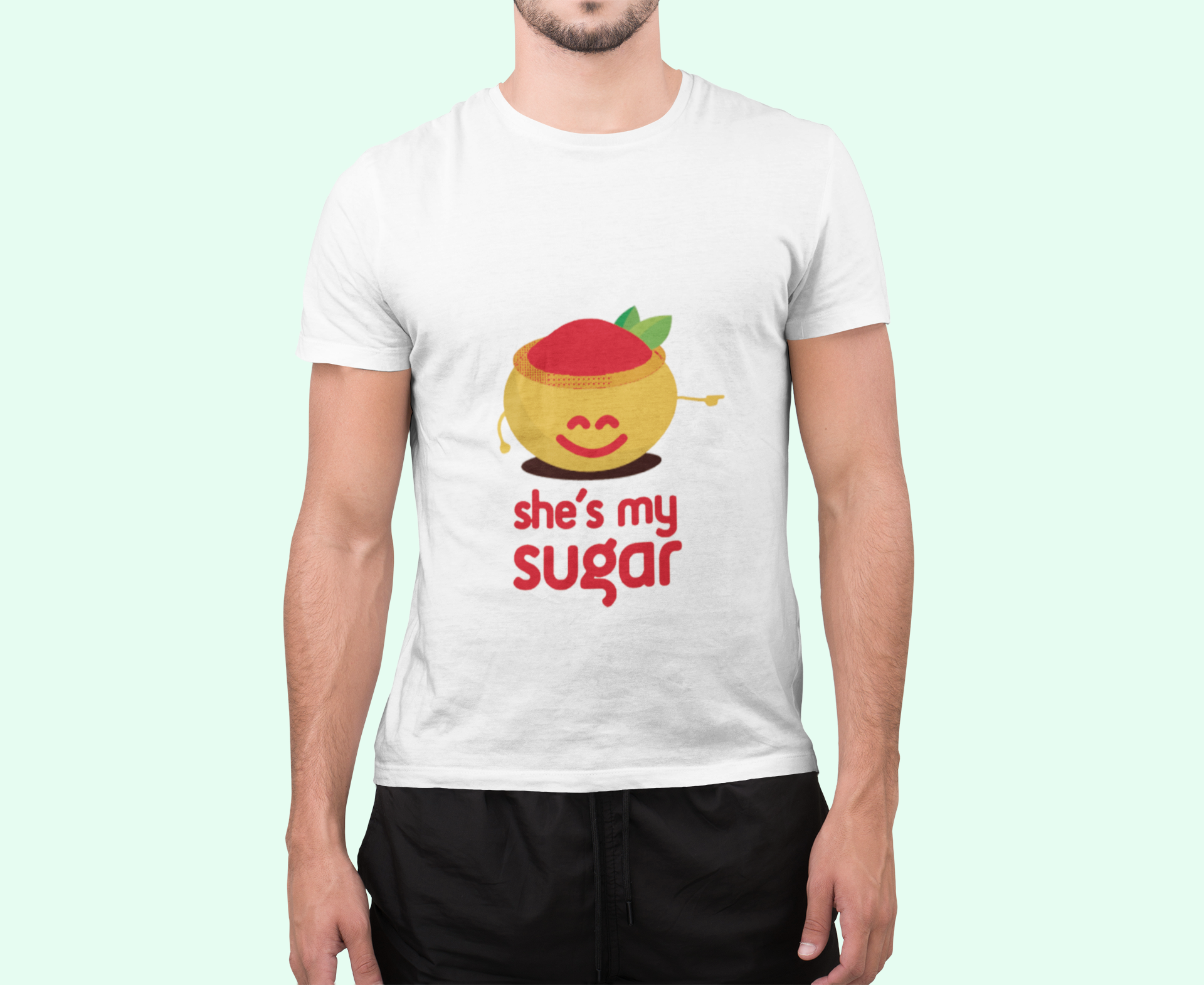 He is my sugar she is my spice Couple Pre Wedding Photoshoot Half Sleeves T-Shirts -FashionRazor