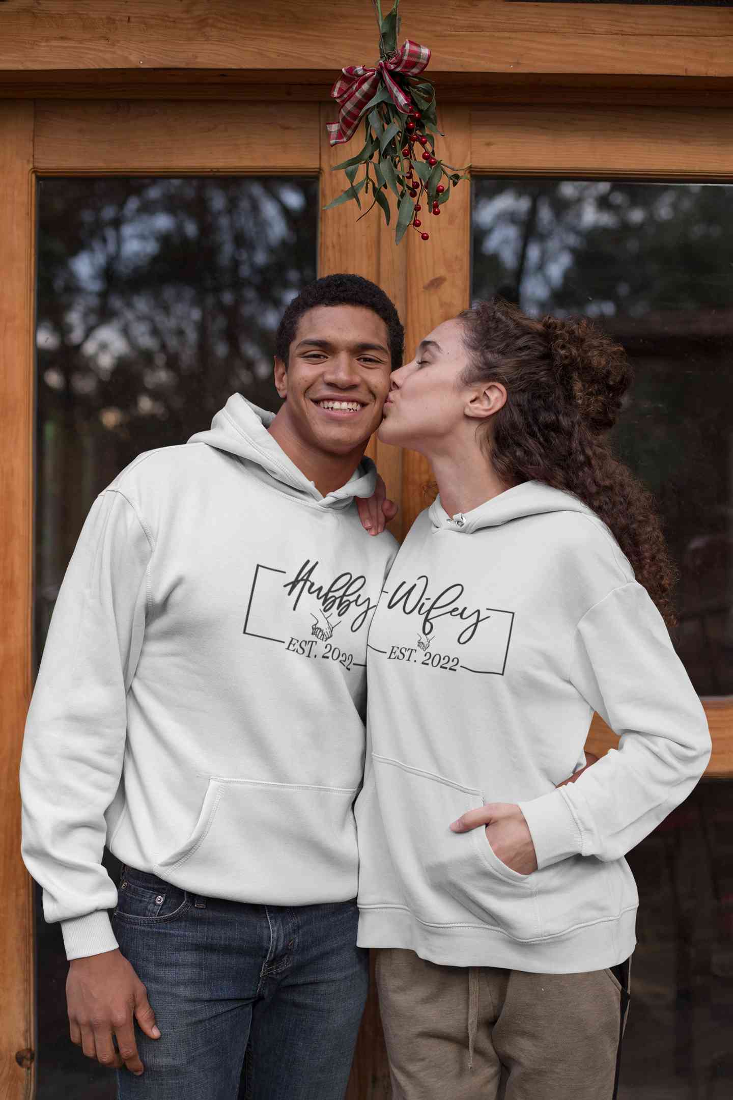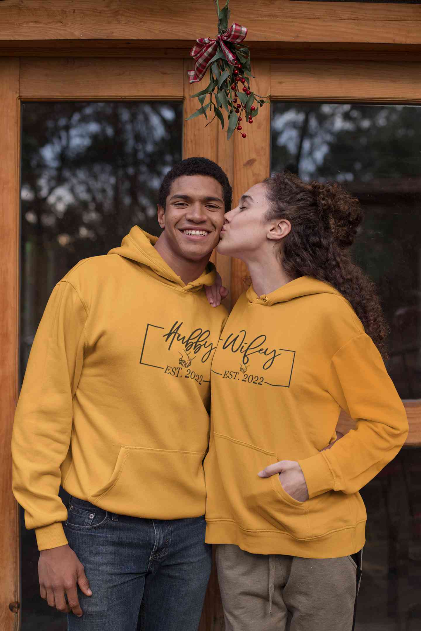 Hubby Wife EST 2022 Couple Pre Wedding Photoshoot Couple Hoodie-FashionRazor