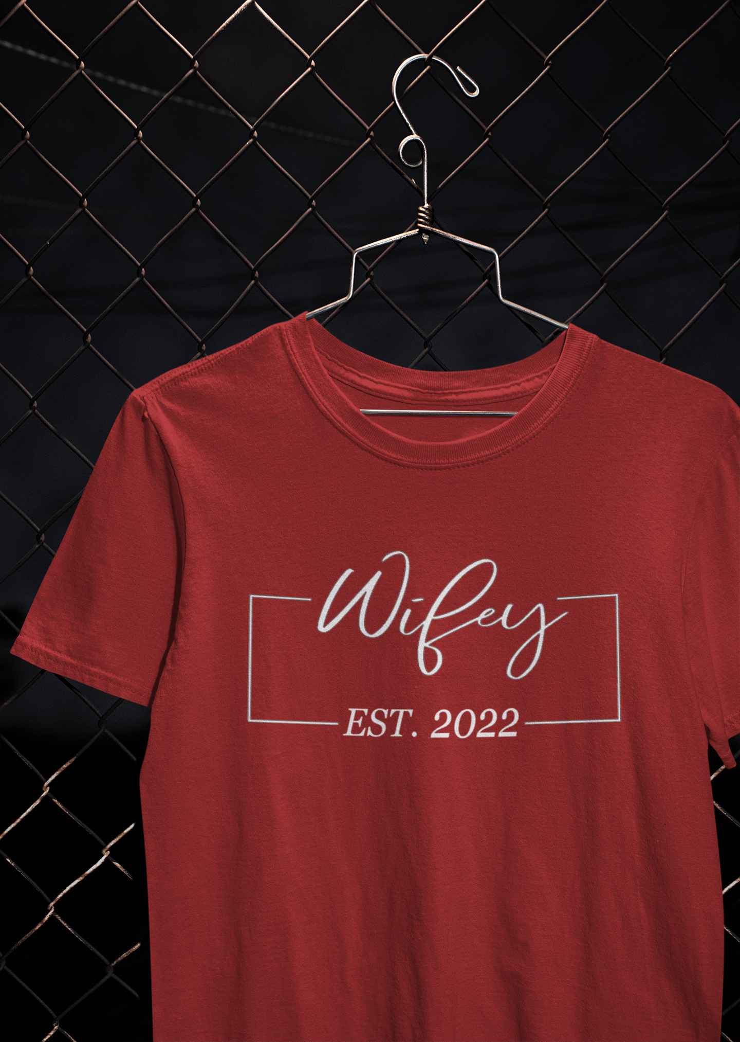 Hubby Wife EST 2022 Couple Pre Wedding Photoshoot Half Sleeves T-Shirts -FashionRazor
