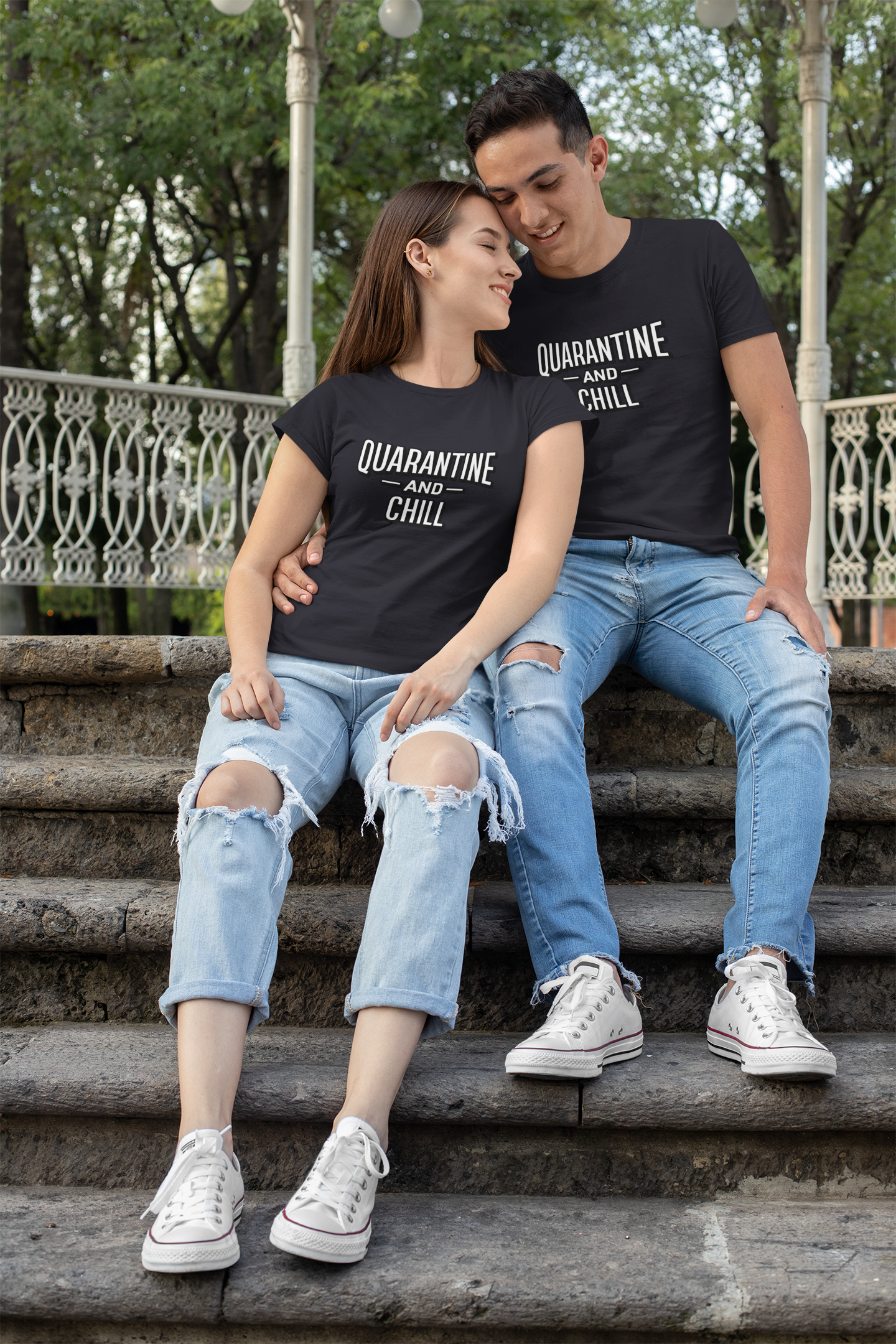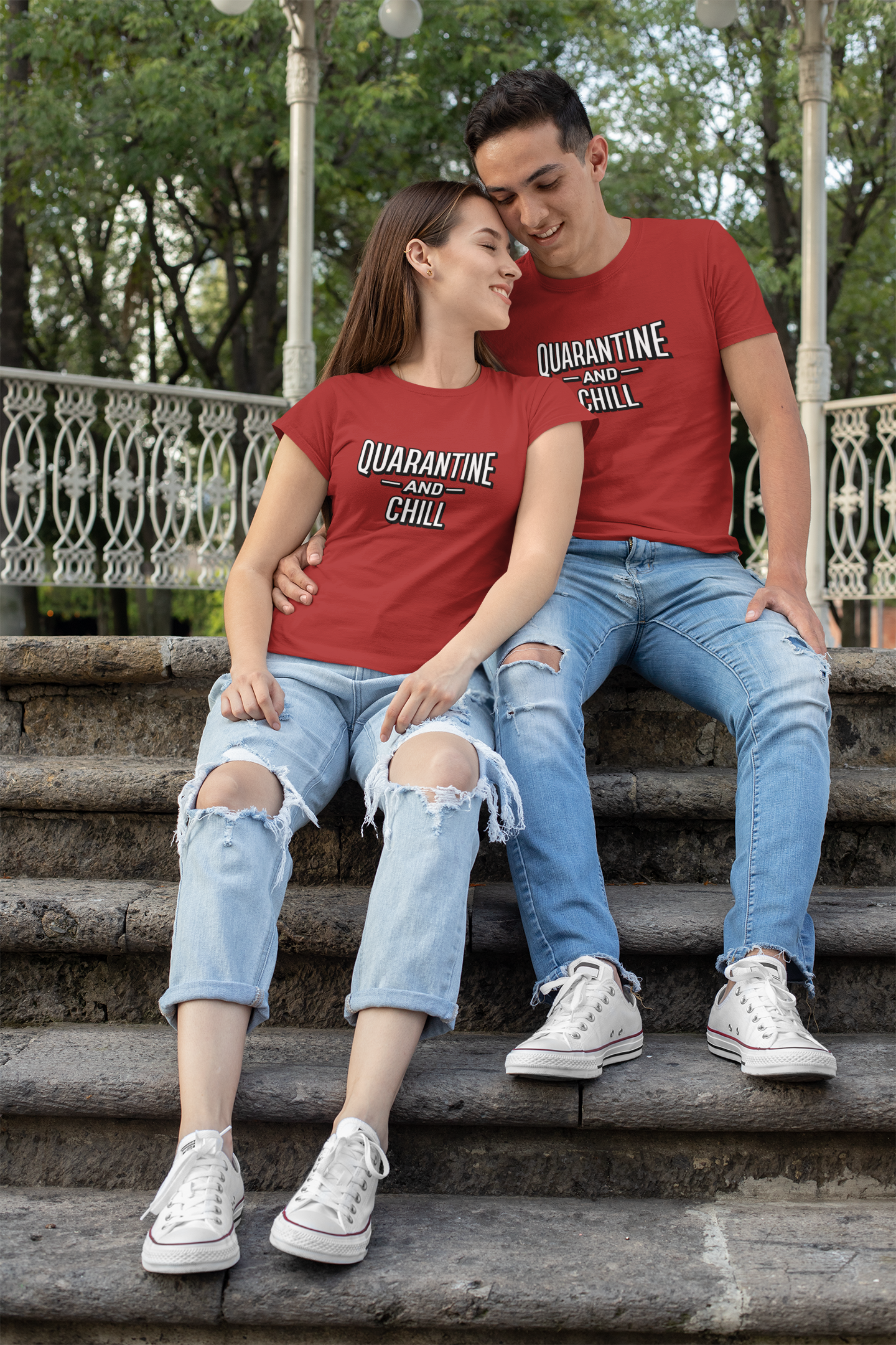 Quarantine And Chill Couple Half Sleeves T-Shirts -FashionRazor