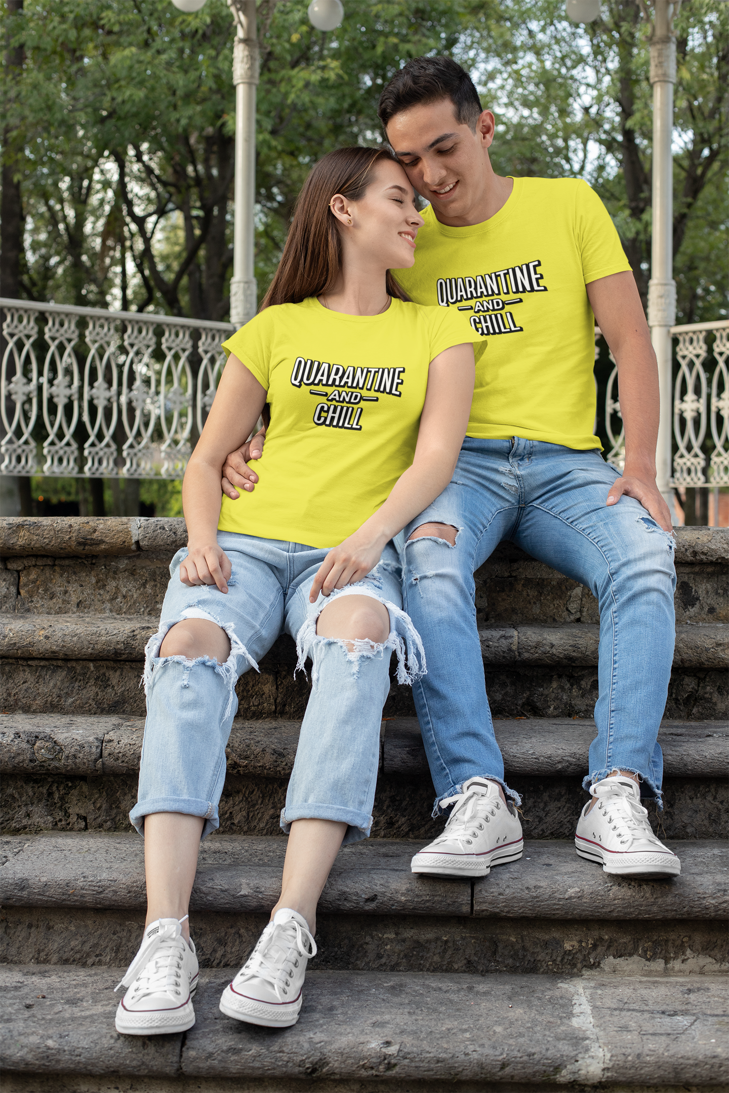 Quarantine And Chill Couple Half Sleeves T-Shirts -FashionRazor