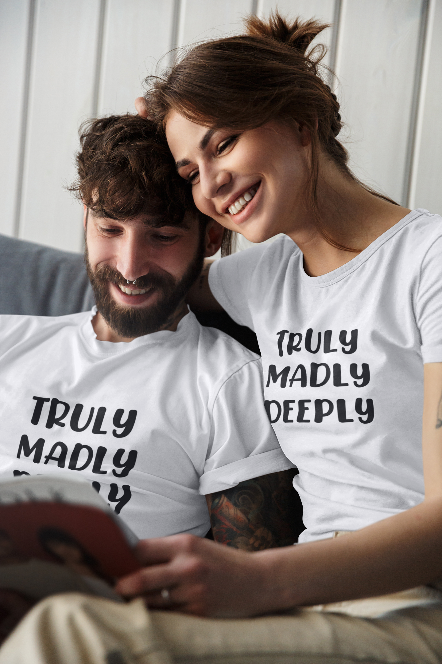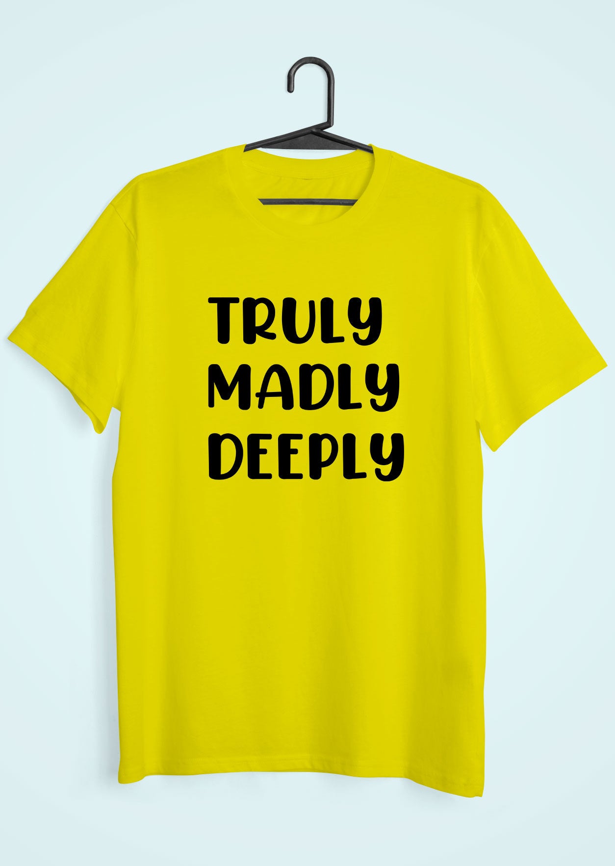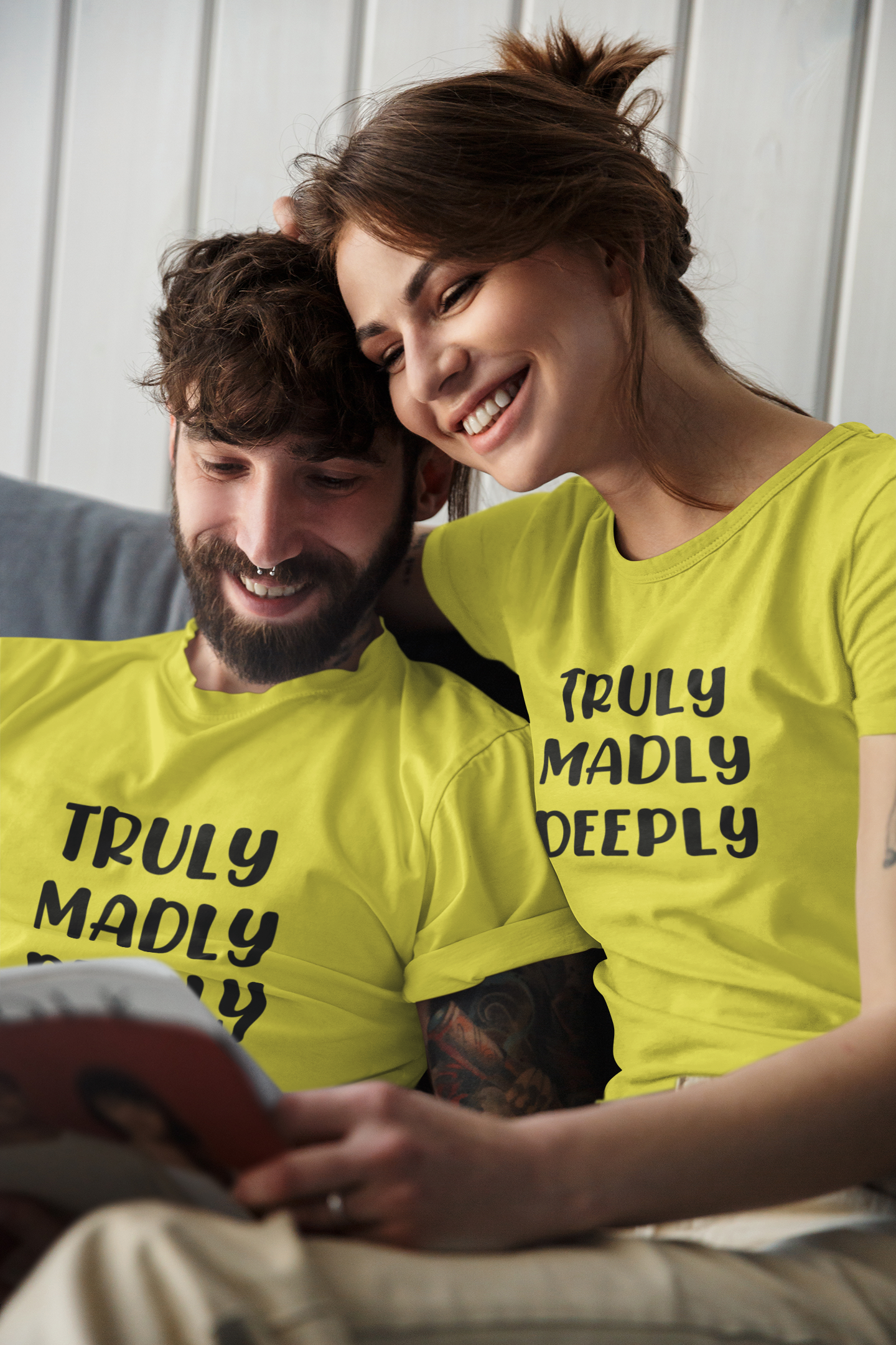 Truly Madly Deeply Couple Half Sleeves T-Shirts -FashionRazor
