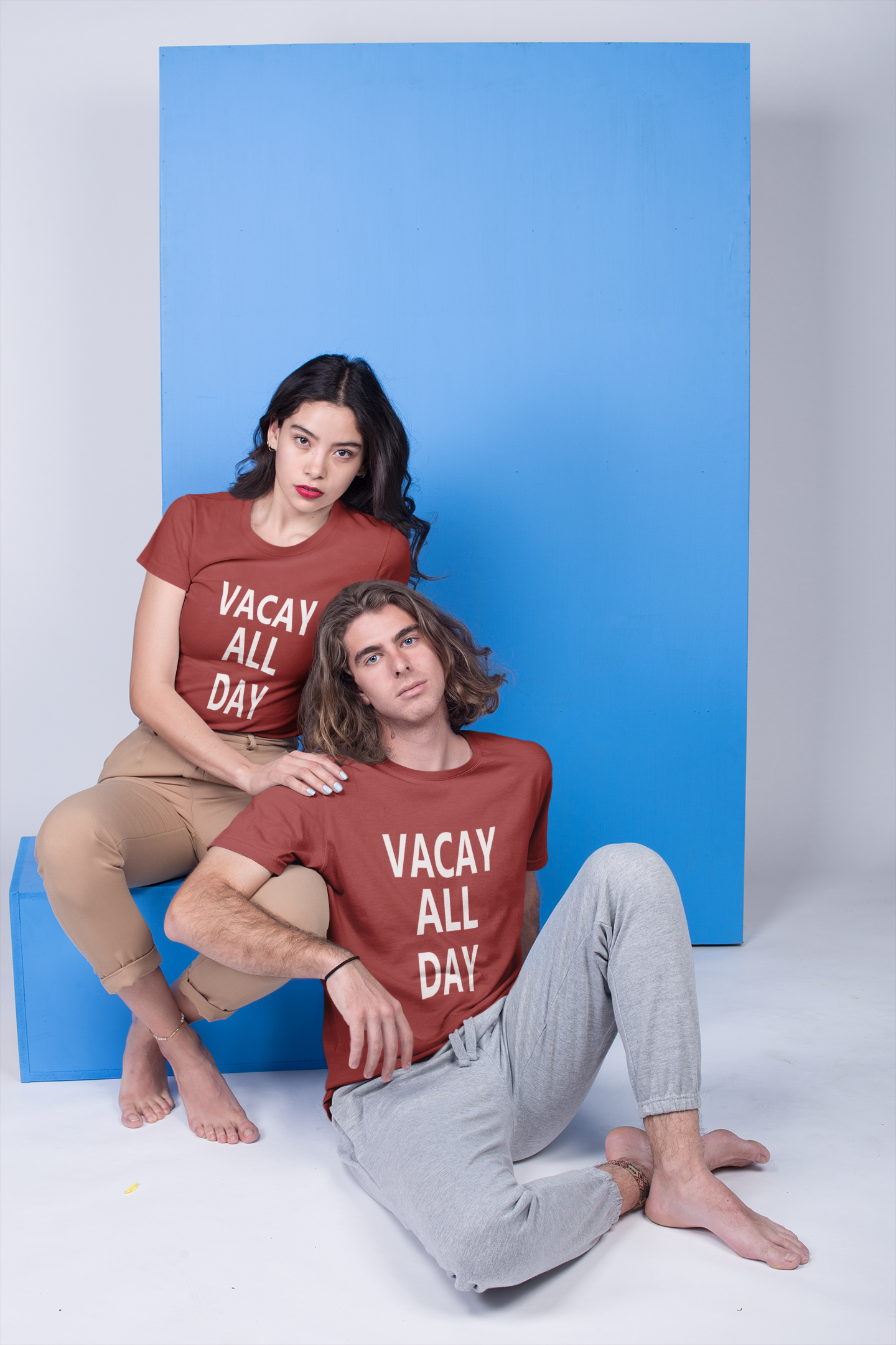 Vacay All Day Couple Half Sleeves T-Shirts -FashionRazor