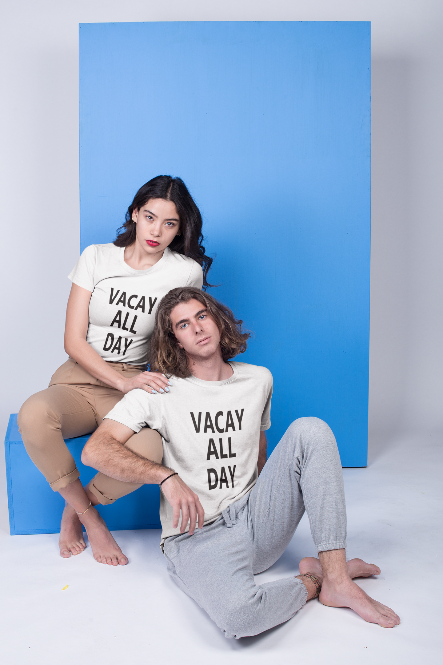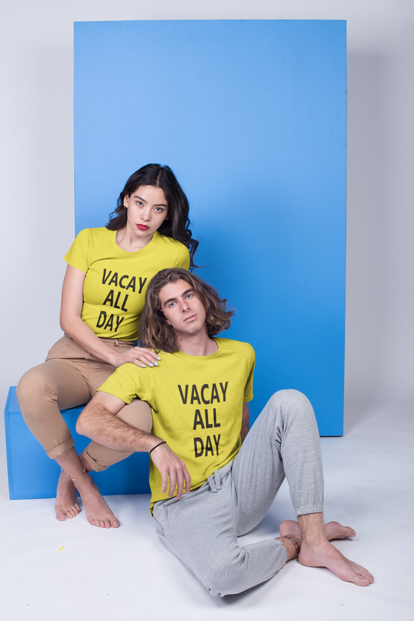 Vacay All Day Couple Half Sleeves T-Shirts -FashionRazor