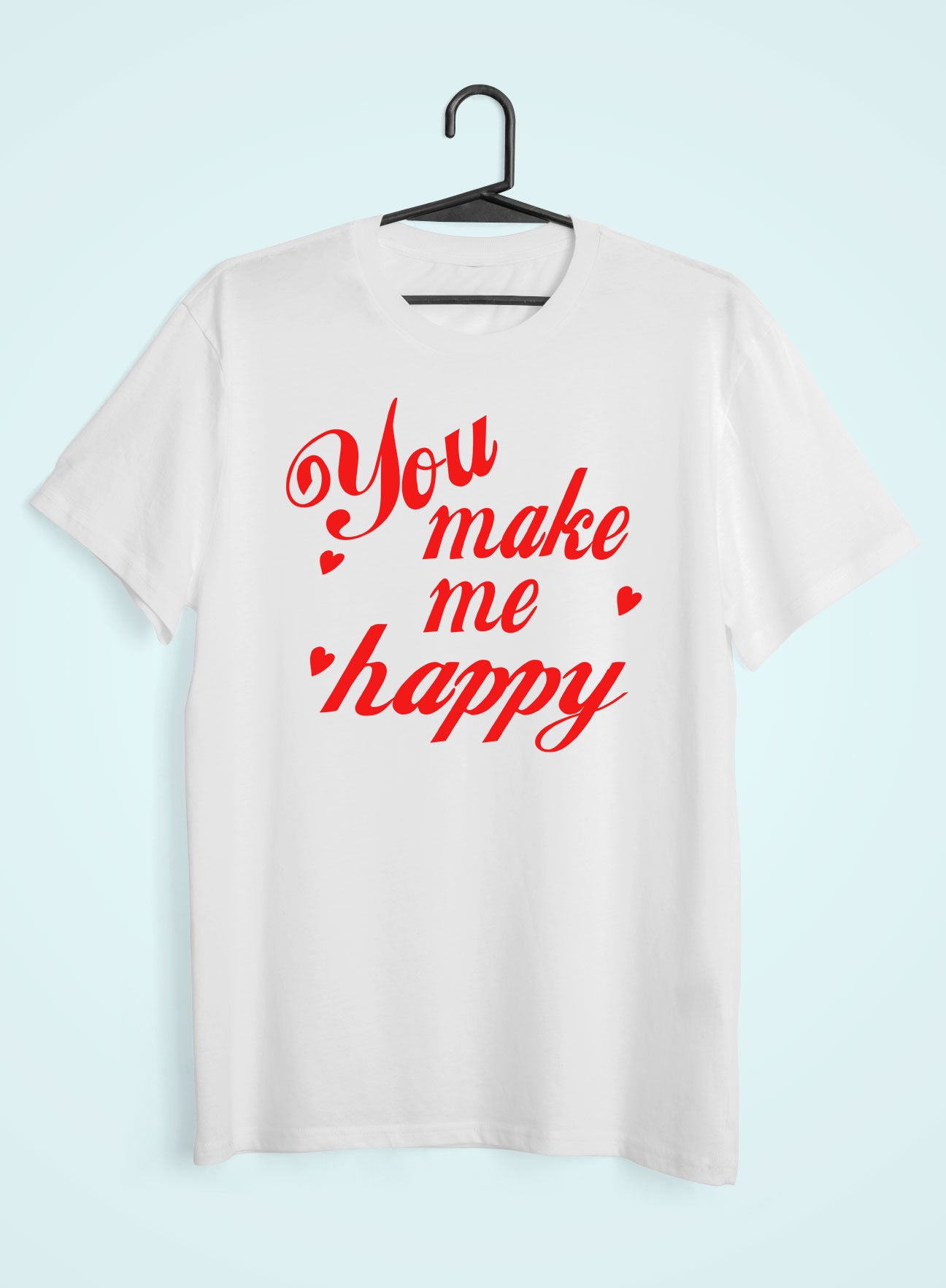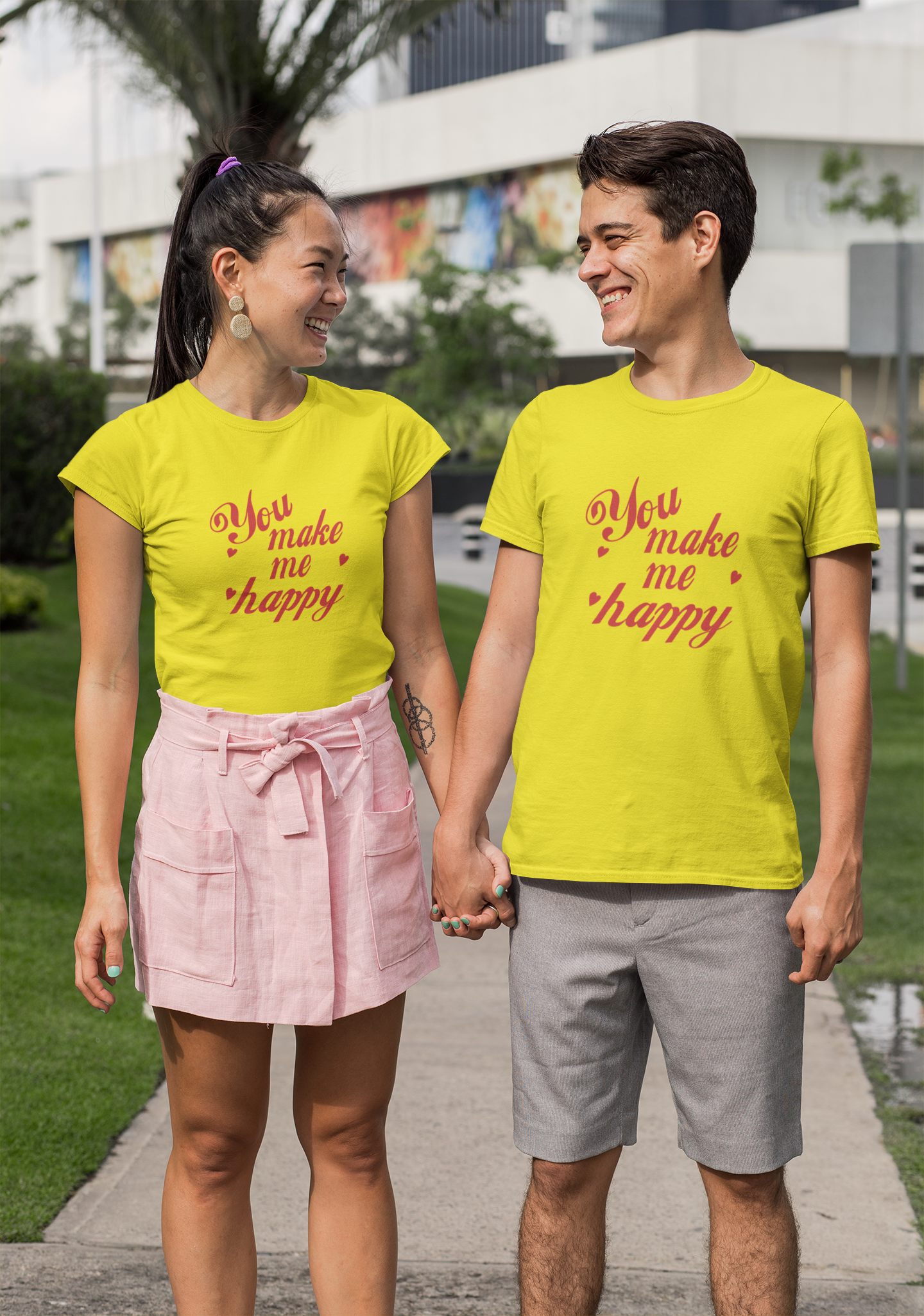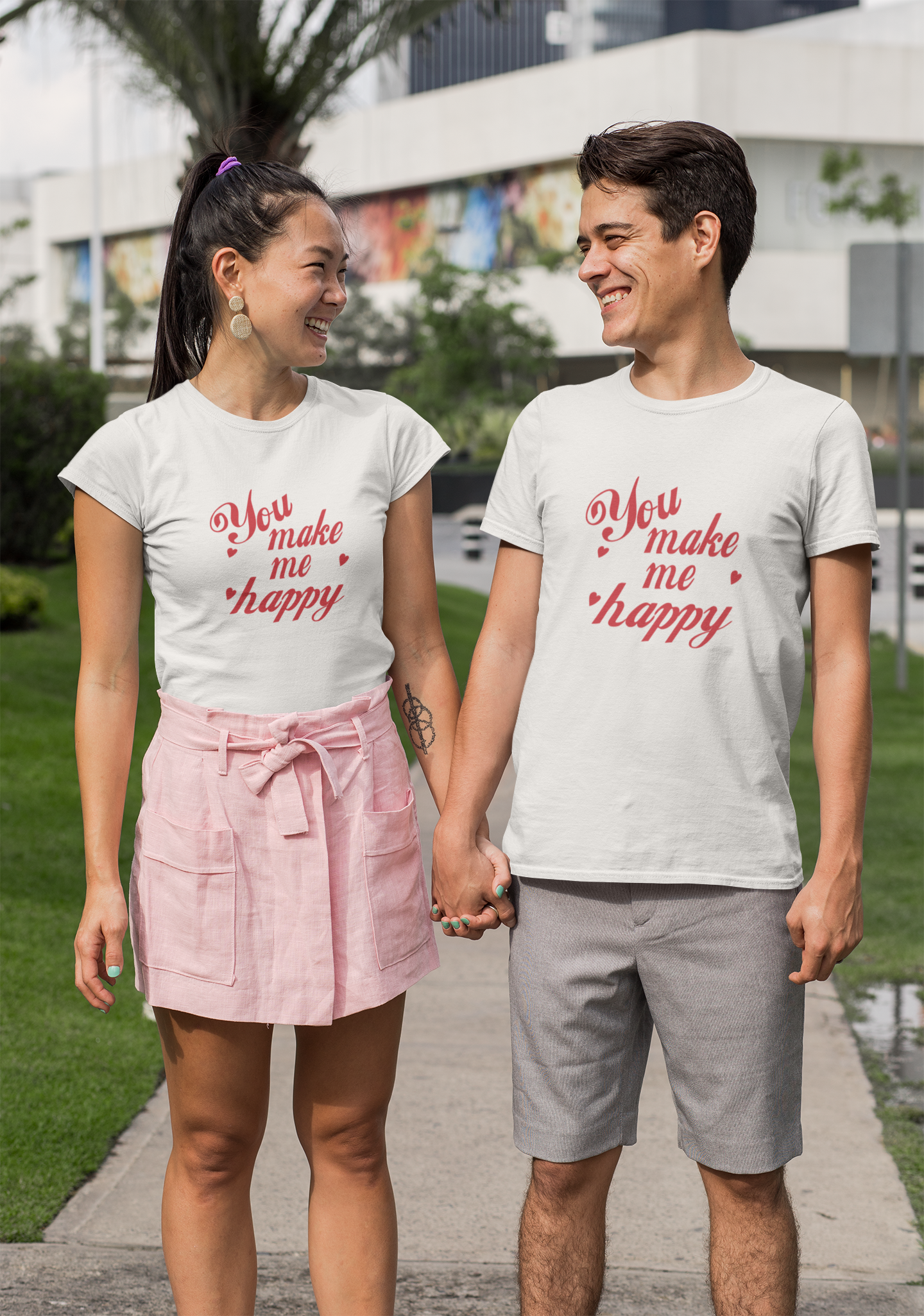 You Make Me Happy Couple Half Sleeves T-Shirts -FashionRazor