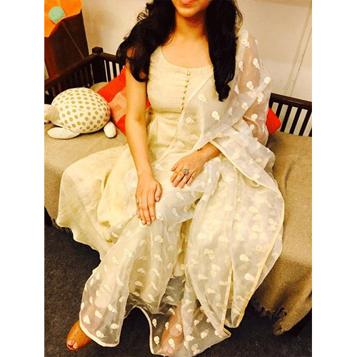 Beautiful Designer Wear Milky White Suit-Pant Set With Cotton Embroidered Thread Work Dupatta-FashionRazor