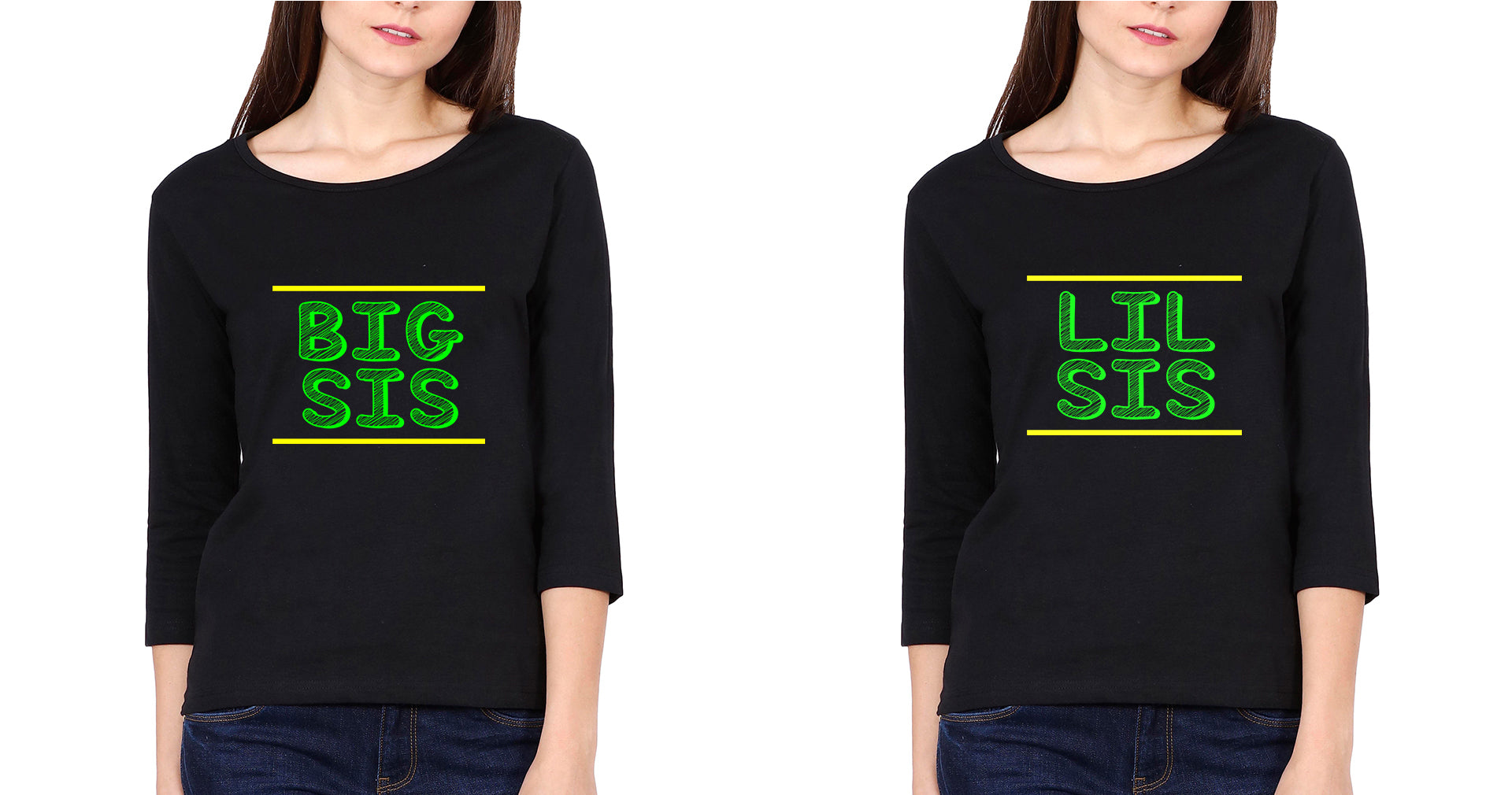 Big Sis Lil Sis Sister Sister Full Sleeves T-Shirts -FashionRazor