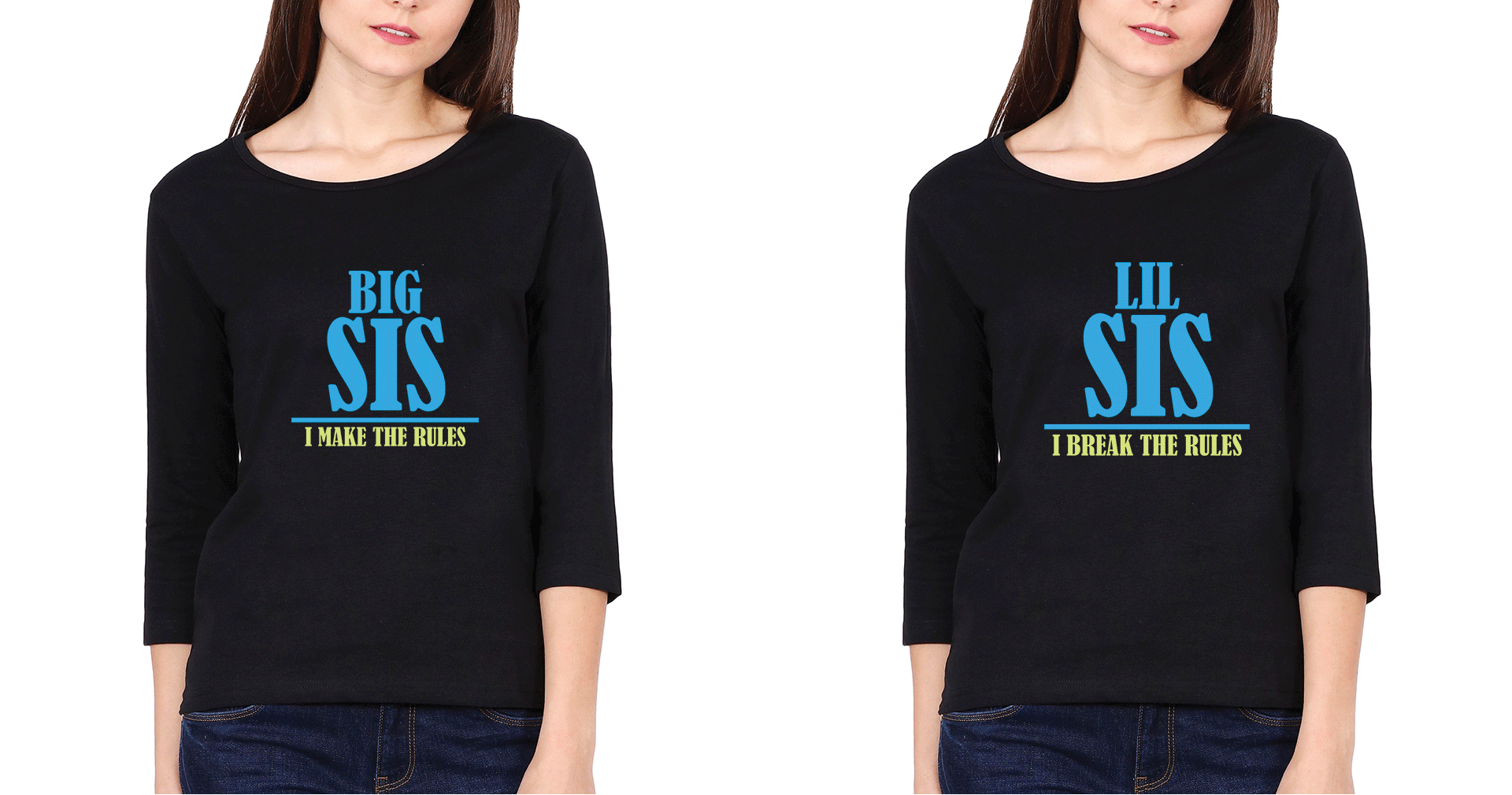 Big Sis Make Rule Lil Sis Break Rule Sister Sister Full Sleeves T-Shirts -FashionRazor