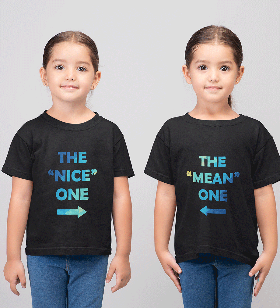 The Nice One The Nice Mean Sister-Sister Kids Half Sleeves T-Shirts -FashionRazor
