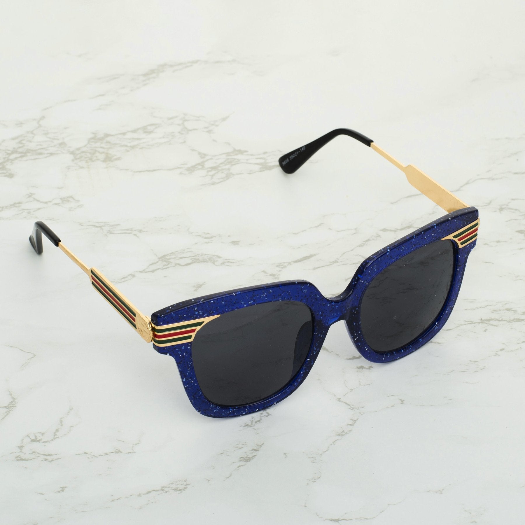 Buy Rectangle Black And Blue Gold Sunglasses For Men And Women-FashionRazor