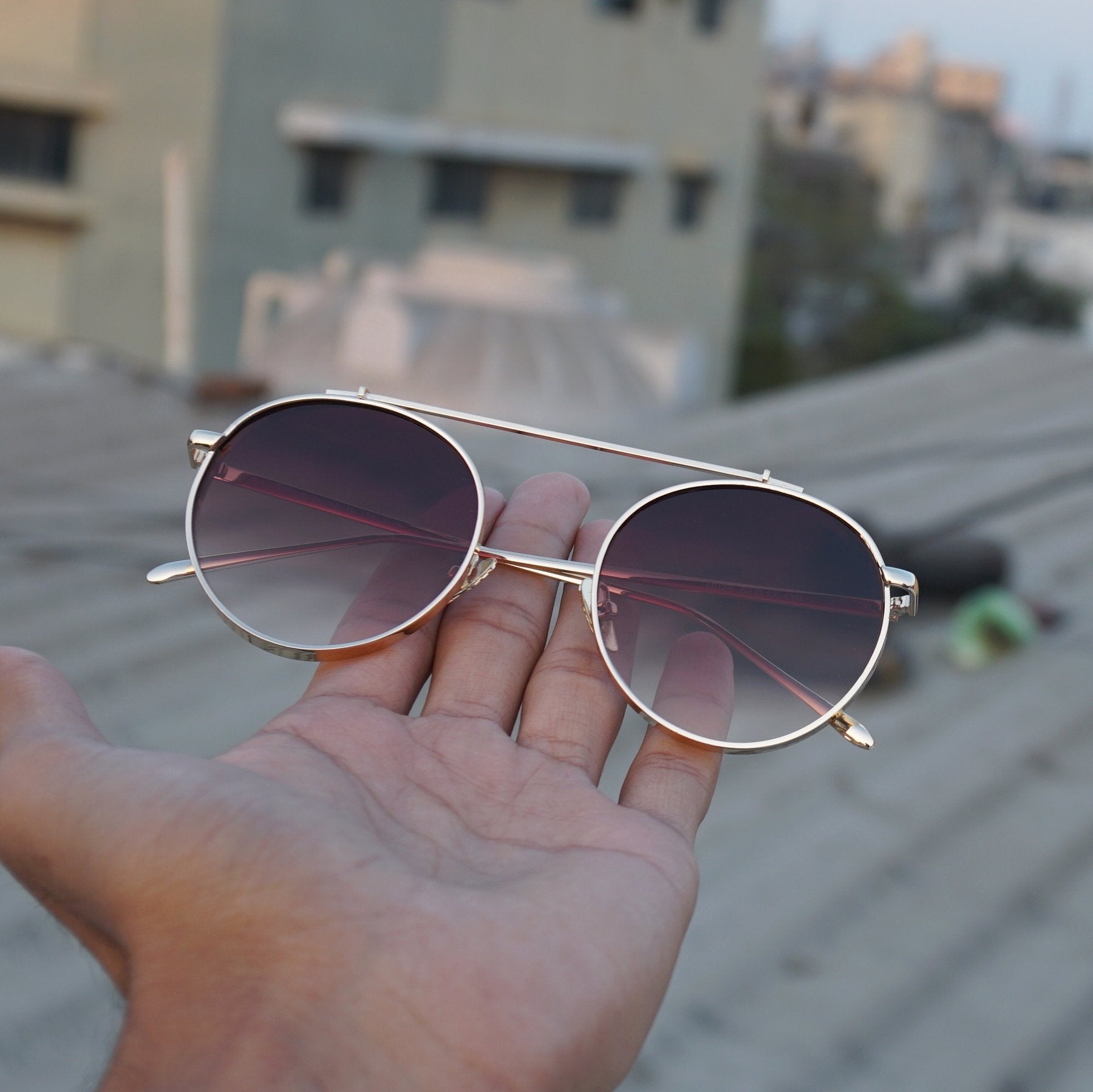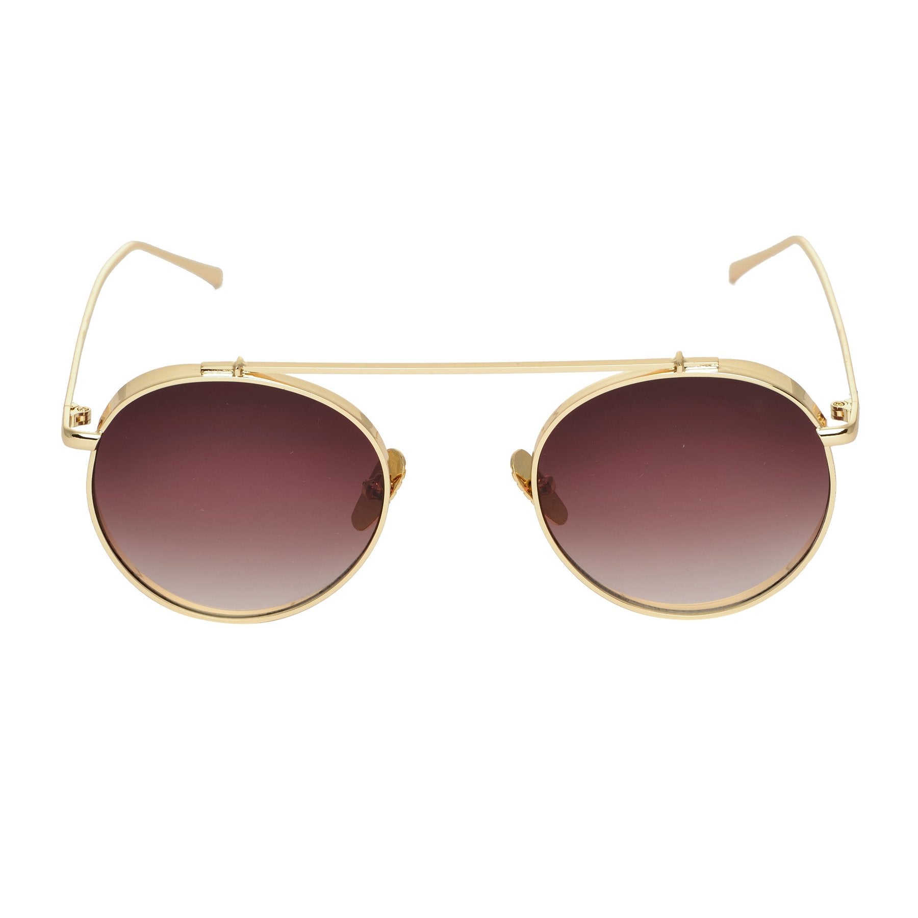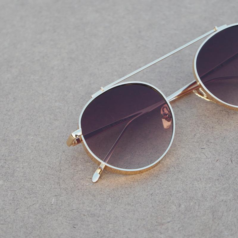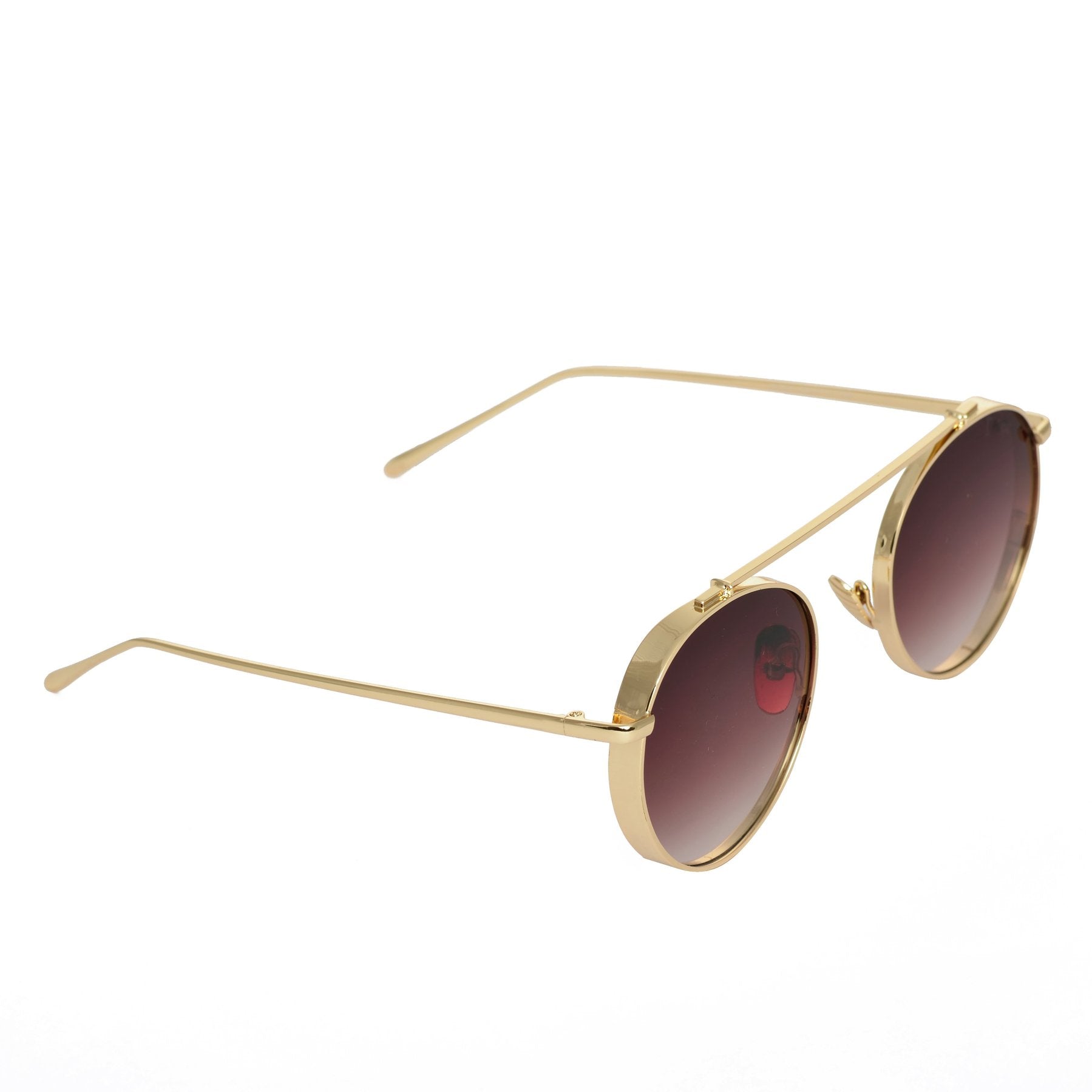 Round Shaded Brown And Gold Sunglasses