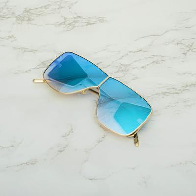 Square Aqua Blue And Gold Sunglasses