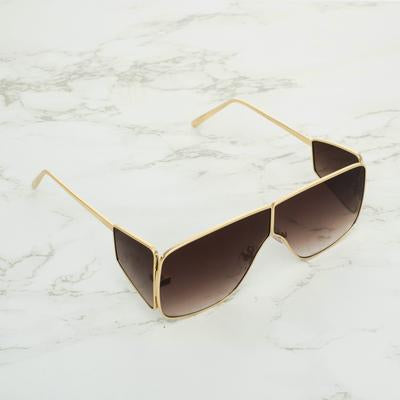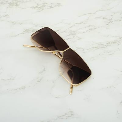 Square Shaded Dark Brown And Gold Sunglasses For Men And Women-FashionRazor