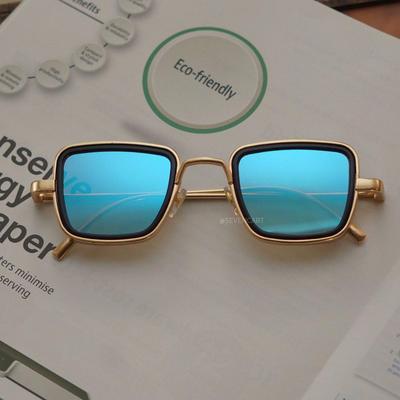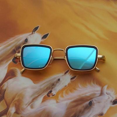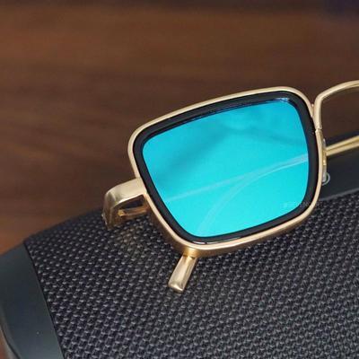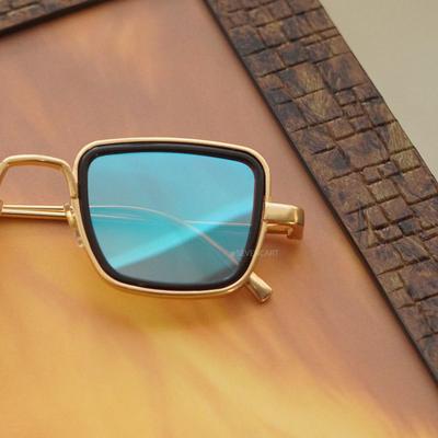Buy Stylish Aqua Blue And Gold Retro Sunglasses For Men And Women-FashionRazor
