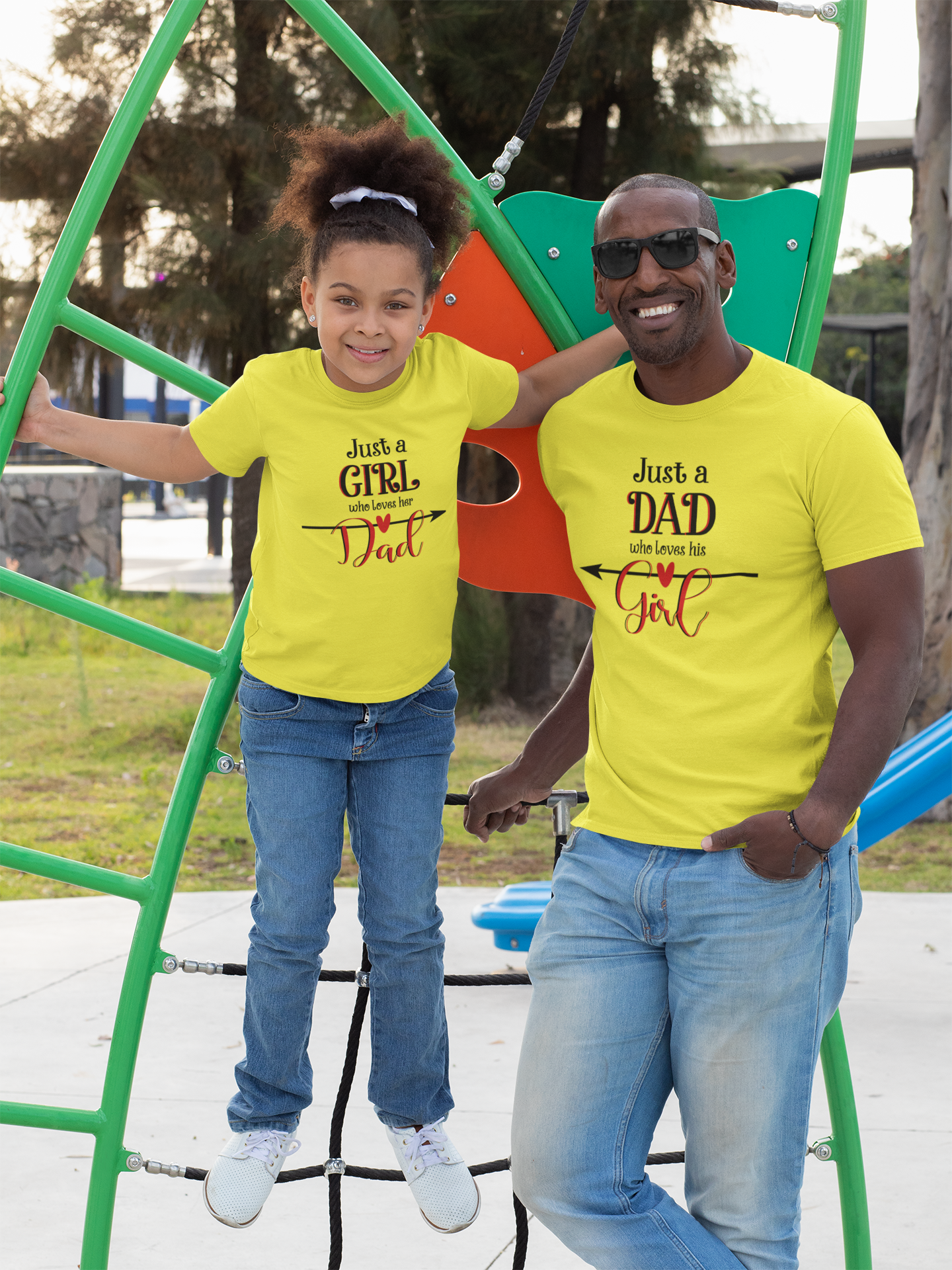 Just A Dad Who Loves His Girl Father and Daughter Yellow Matching T-Shirt- FashionRazor