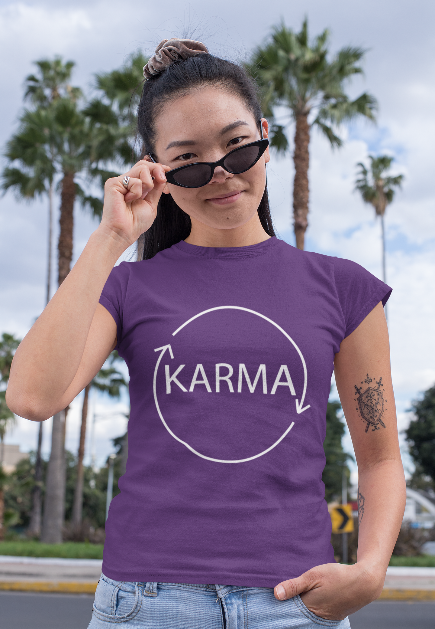 Karma Typography Women Half Sleeves T-shirt- FunkyTeesClub - Funky Tees Club