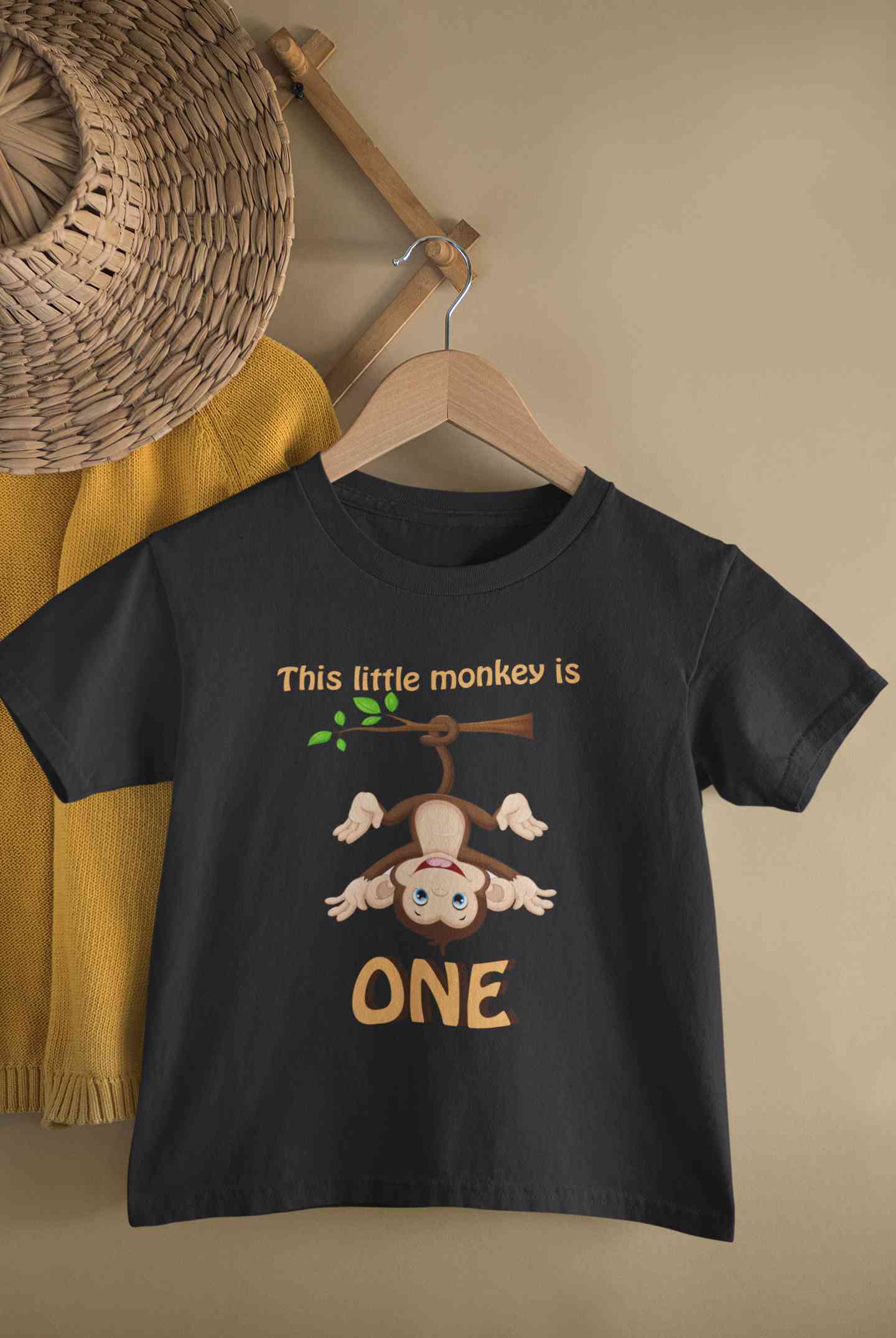 Little Monkey Is One First Birthday Half Sleeves T-Shirt For Girls -FashionRazor