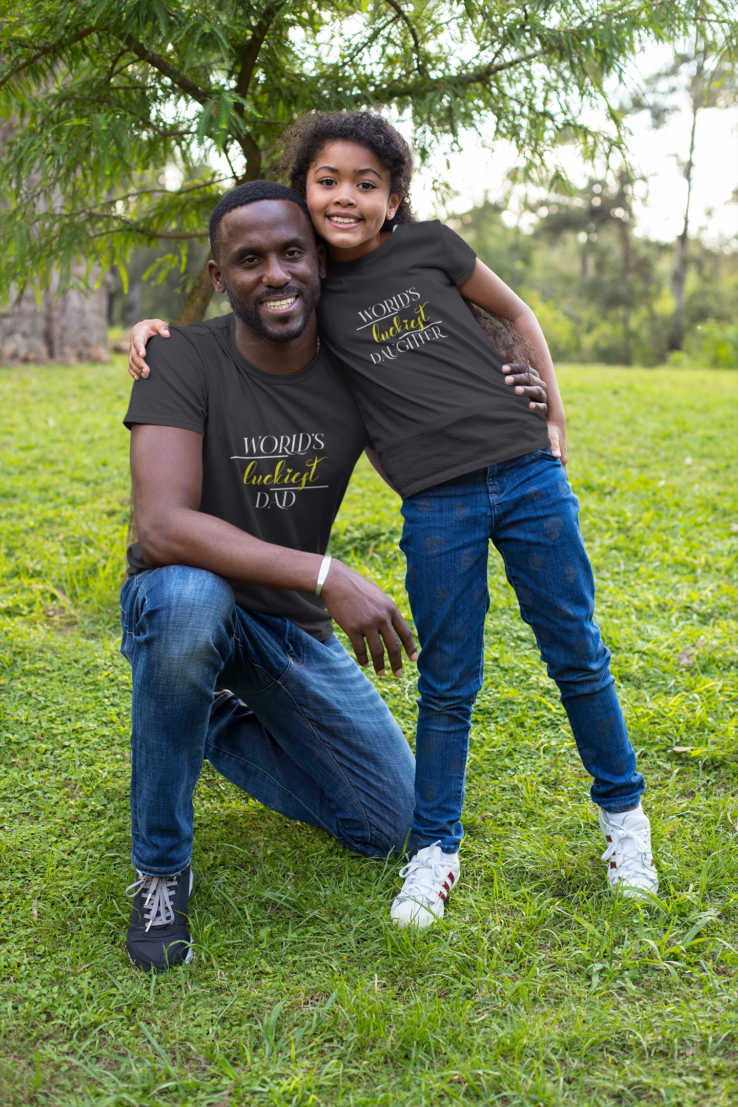 Luckiest Dad Father and Daughter Black Matching T-Shirt- FashionRazor