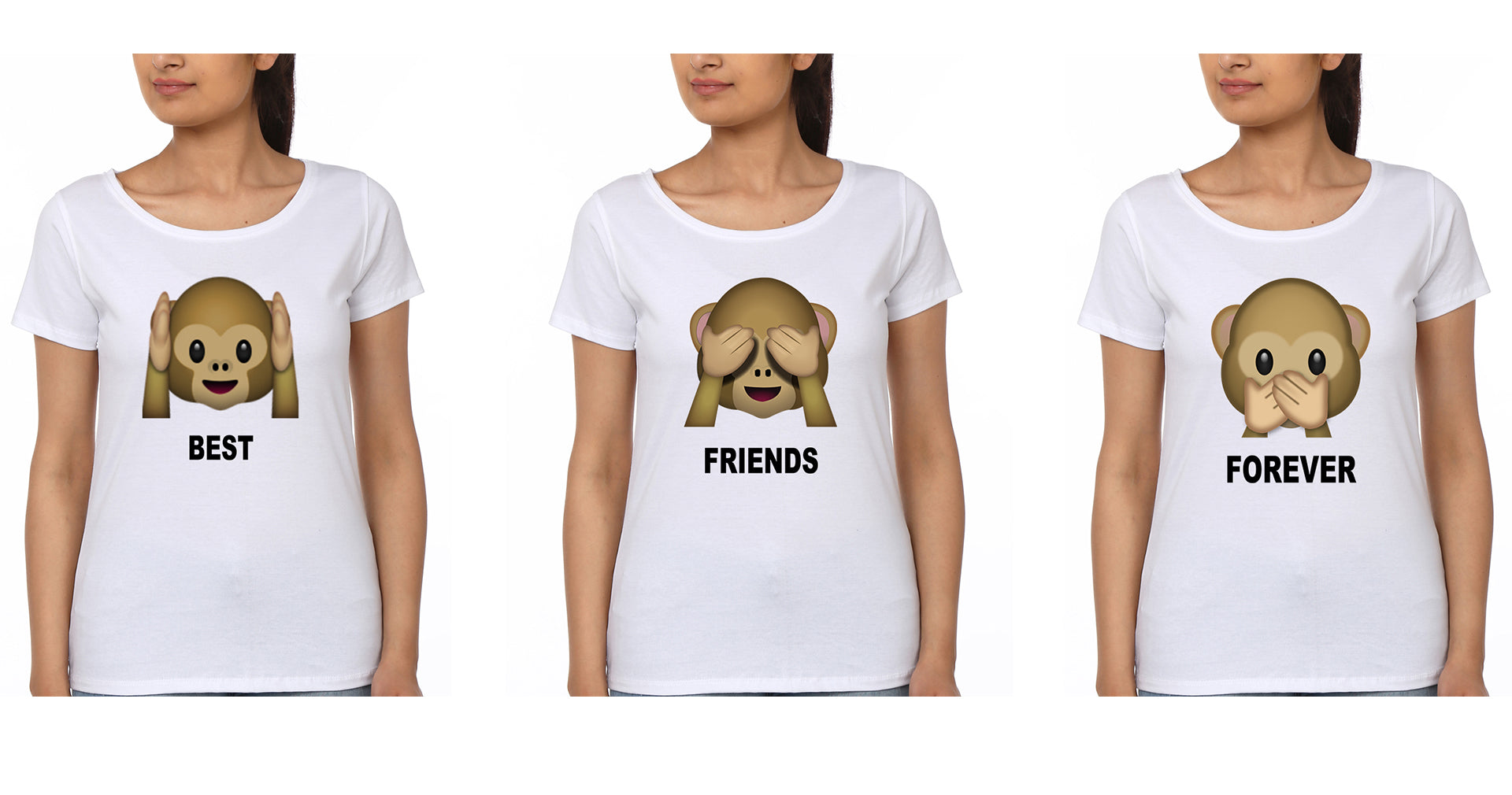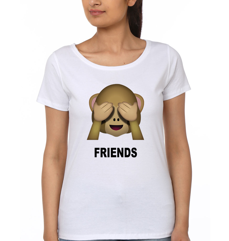 Monkey Emoji BFF Half Sleeves T-Shirts-FashionRazor