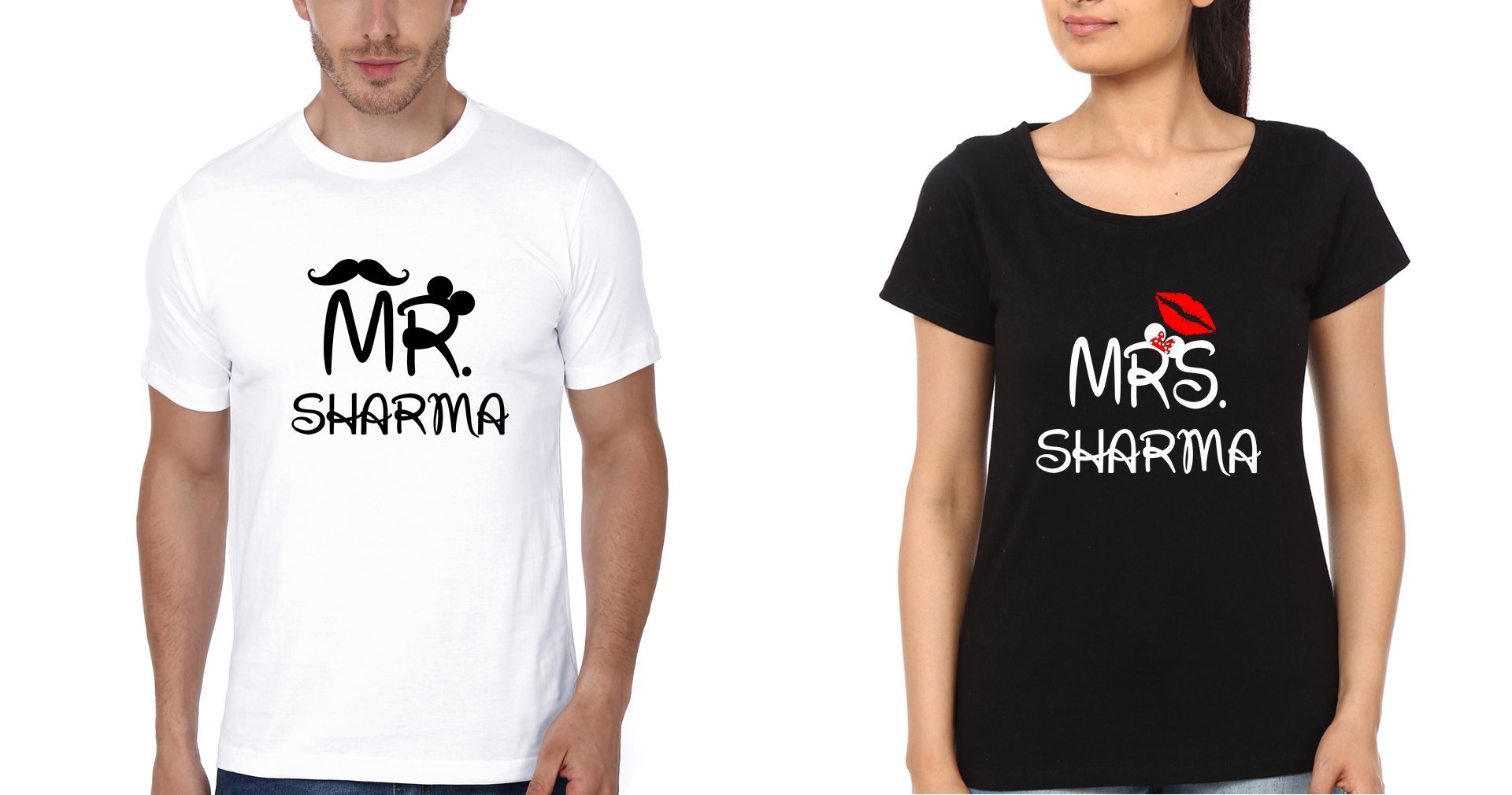 Mr And Mrs Sharma Couple Half Sleeves T-Shirts -FunkyTees