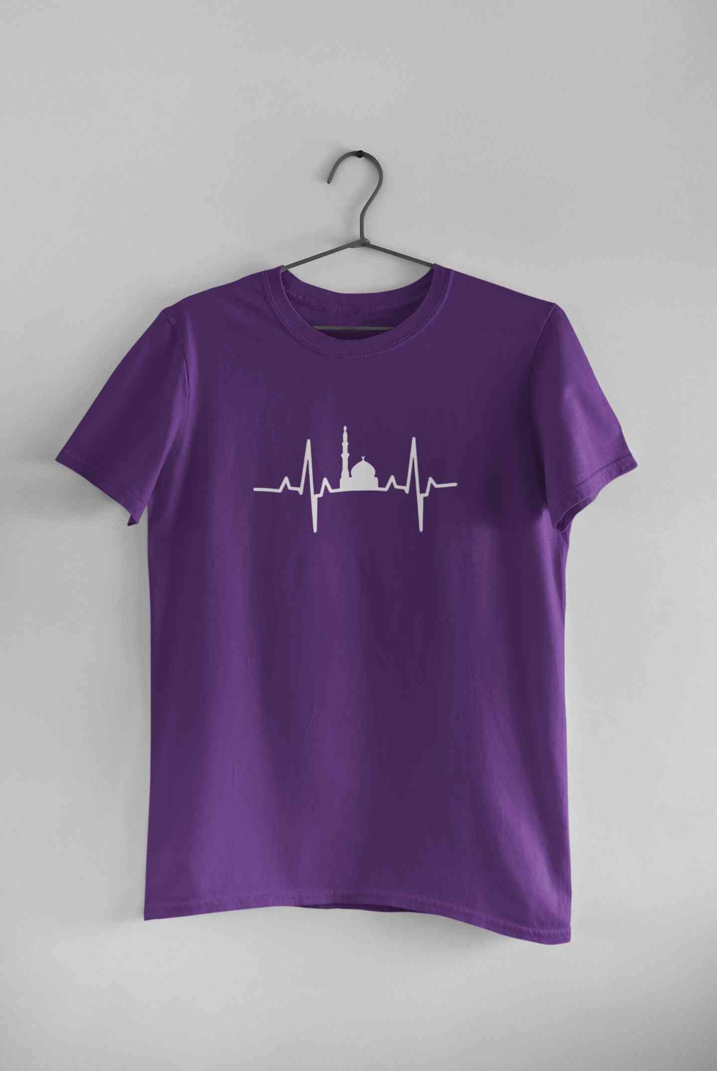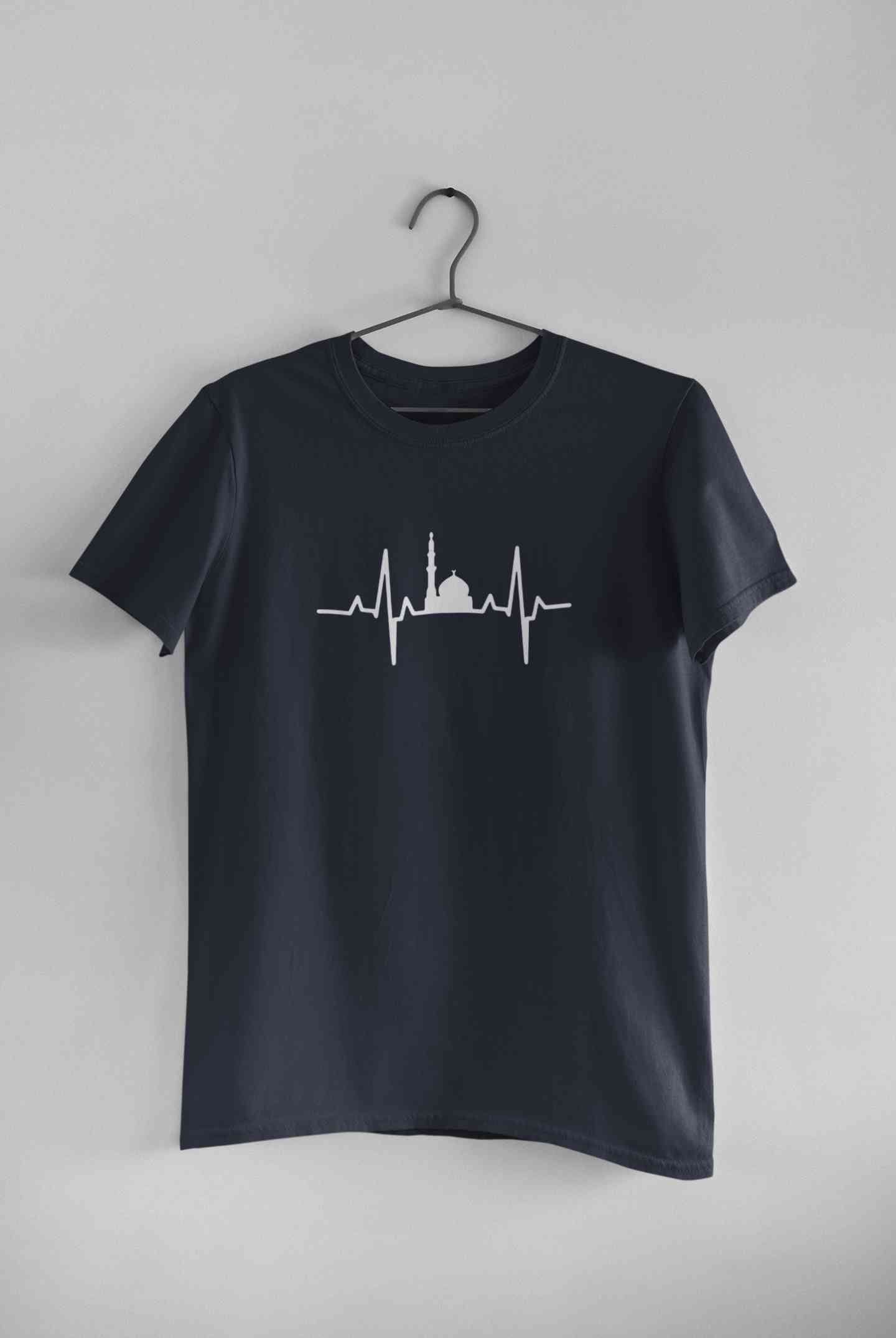 Muslim Heartbeat Islamic Mosque Worship Place Mens Half Sleeves T-shirt- FashionRazor